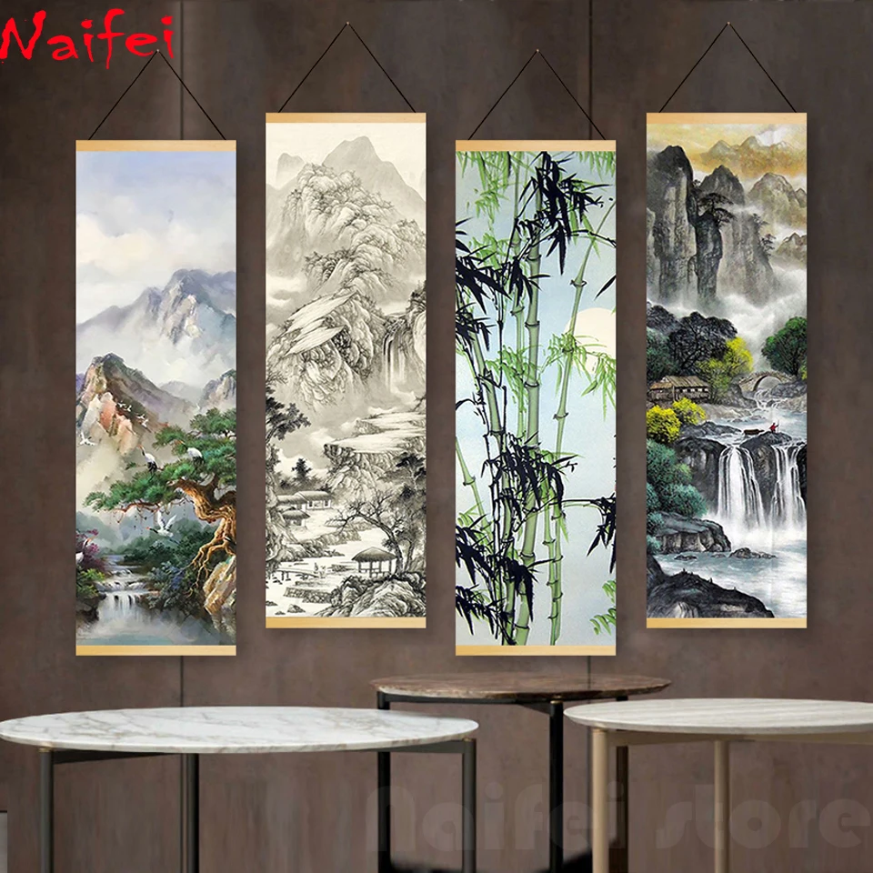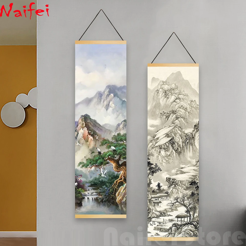 Алмазная живопись сделай сам, полноразмерная круглая китайская пейзажная живопись с чернилами, водное искусство для 5d алмазная вышивка, домашний декор, подарок