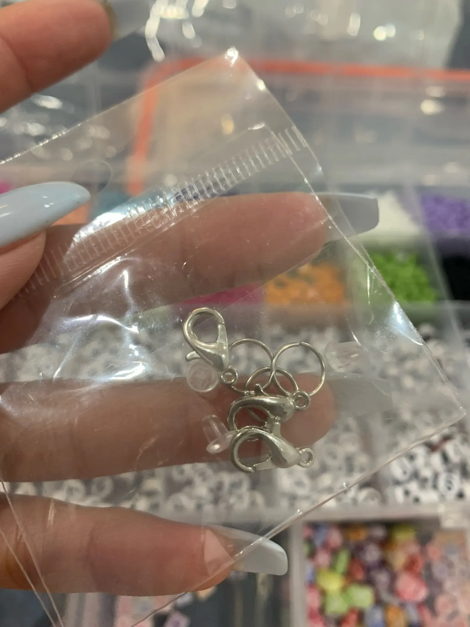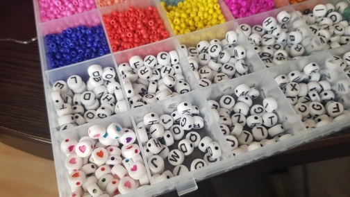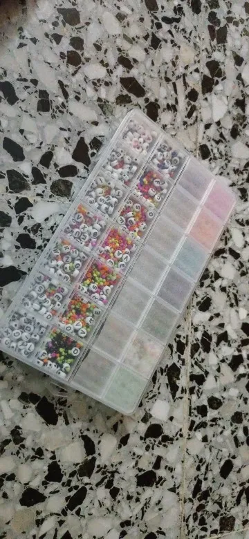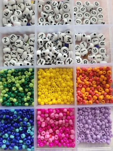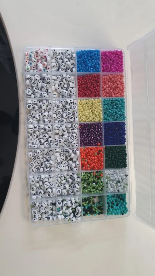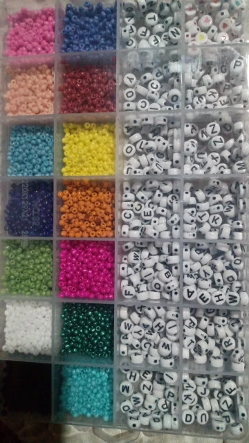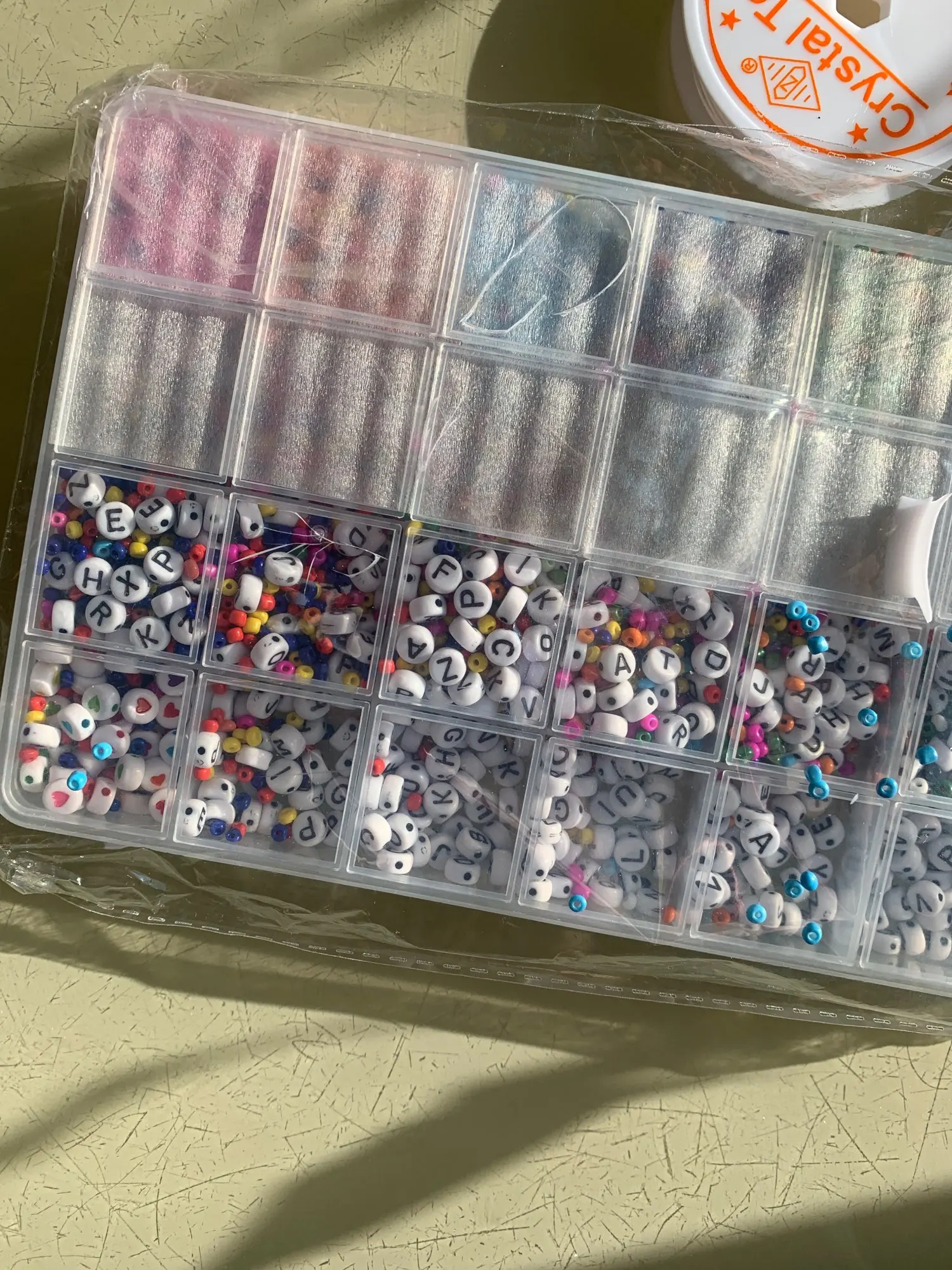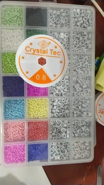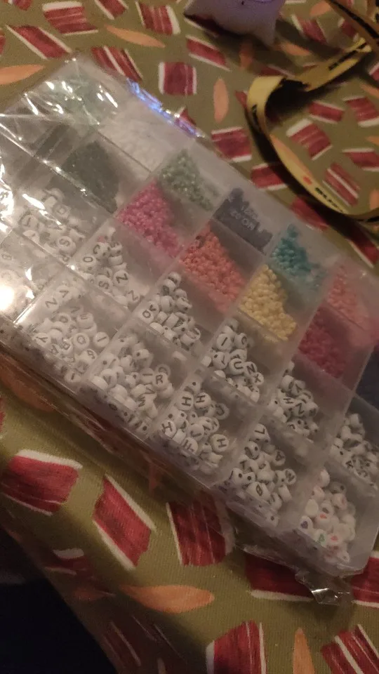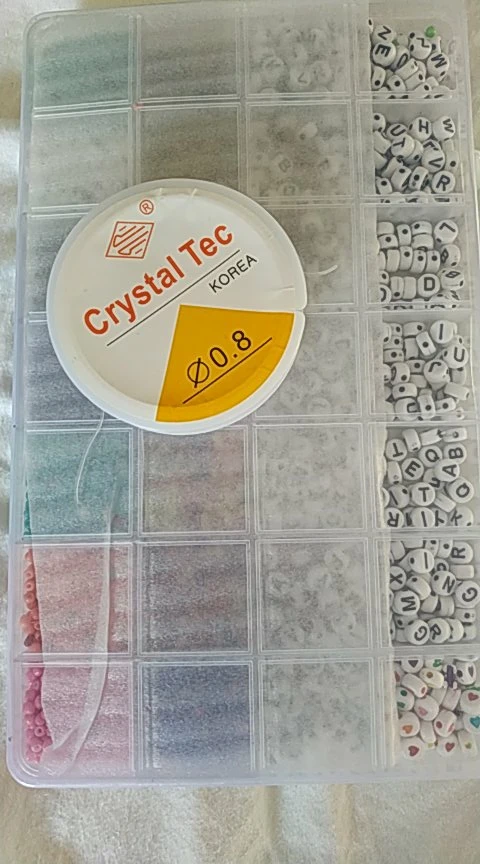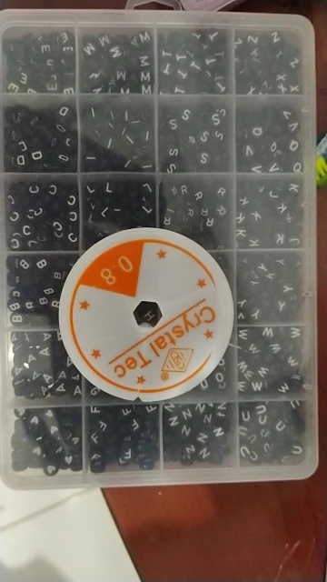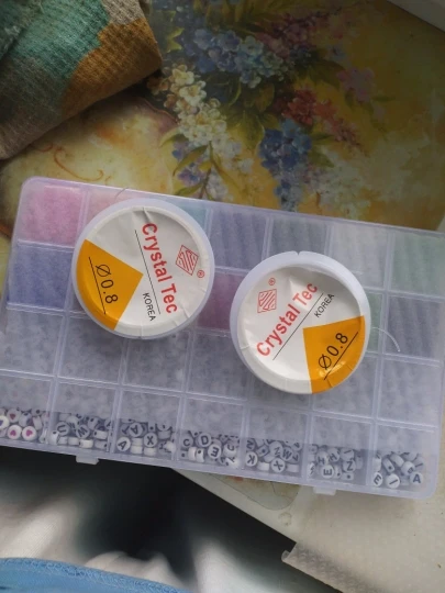 Очень красиво упаковано. Все подошло в аккуратном и организованном виде в этом пластиковом ящике для хранения. В комплект входят коготь лобстера, а также пластиковые хрустальные нити. Бусины с буквами не были даже в количестве, некоторые из них были более 6, а некоторые-только 1 или 2.