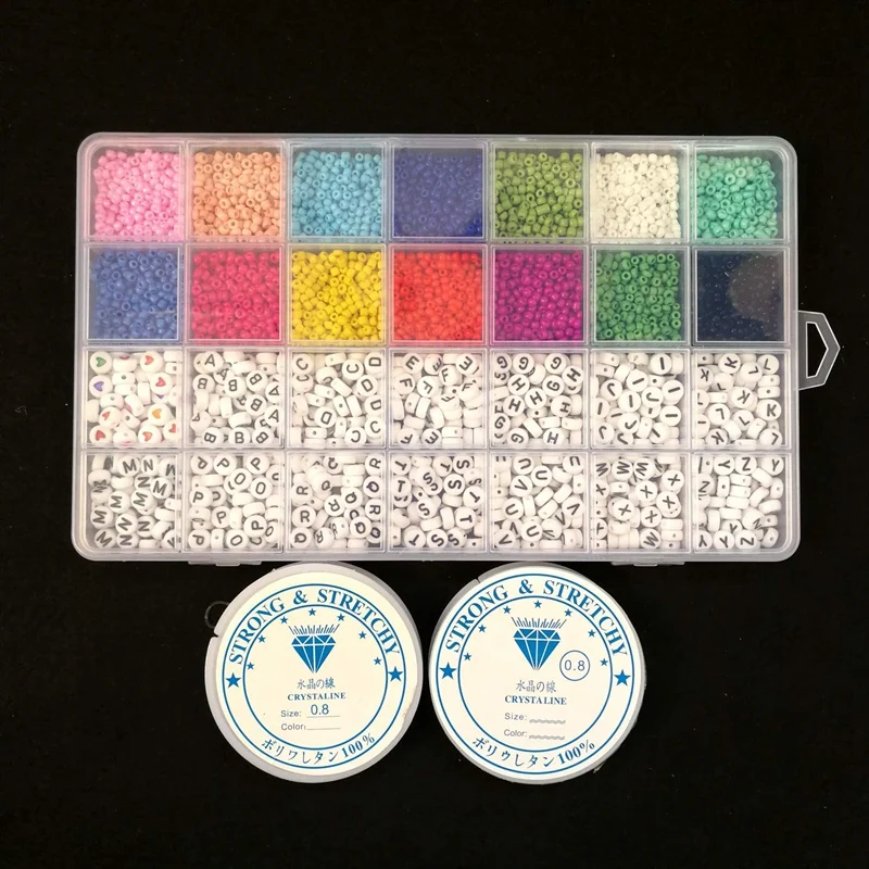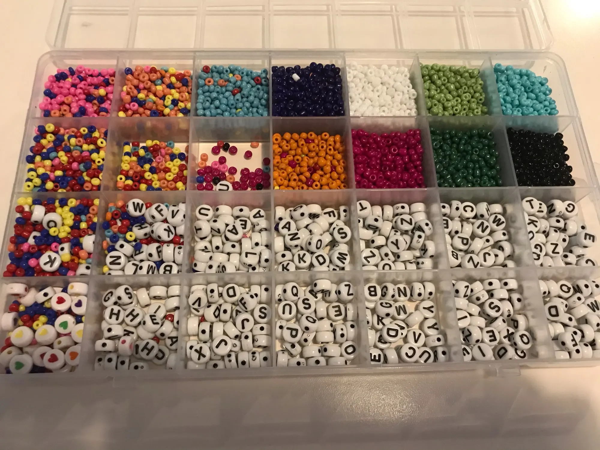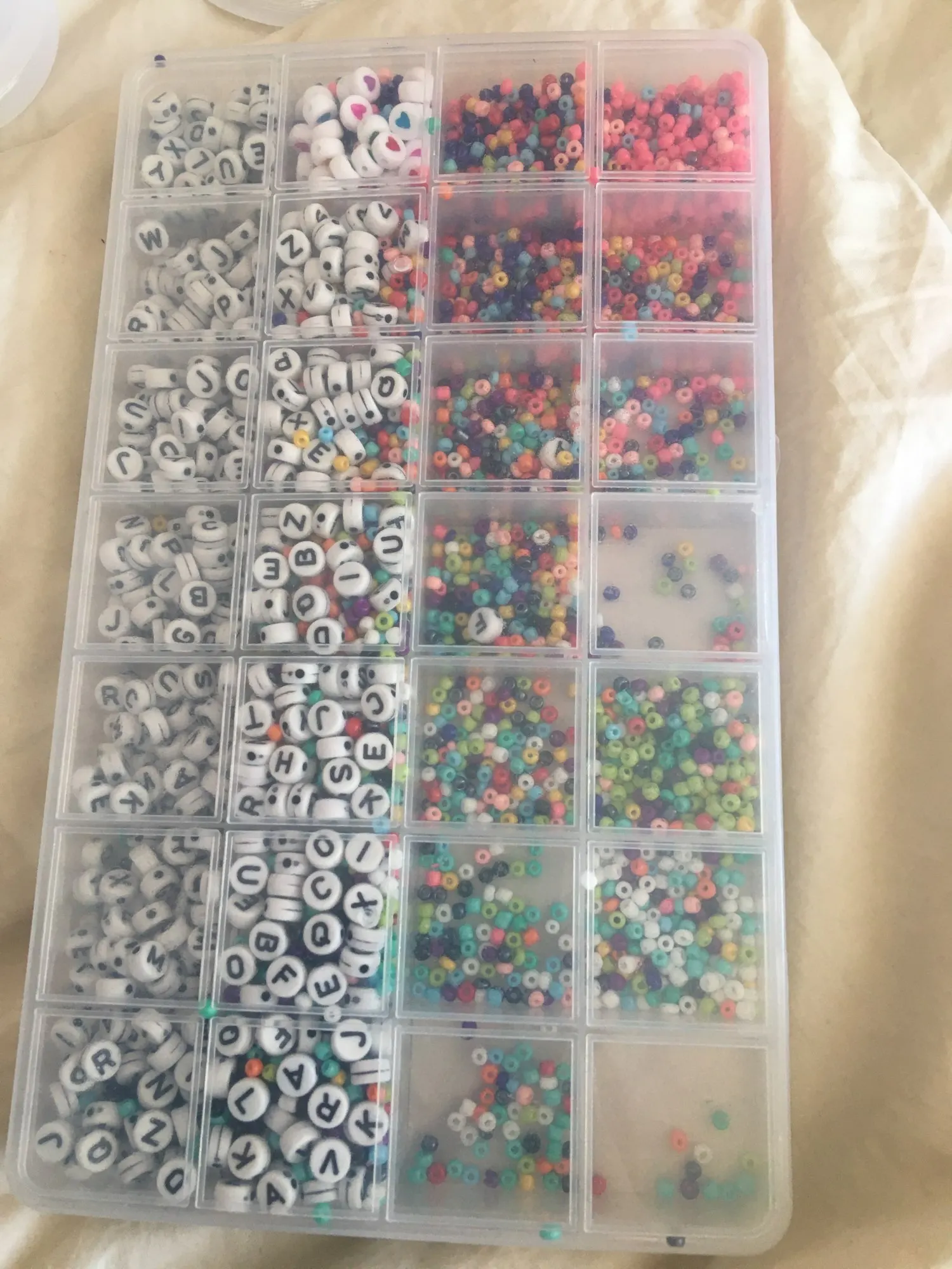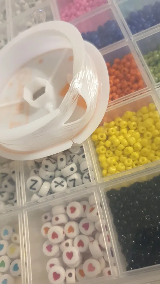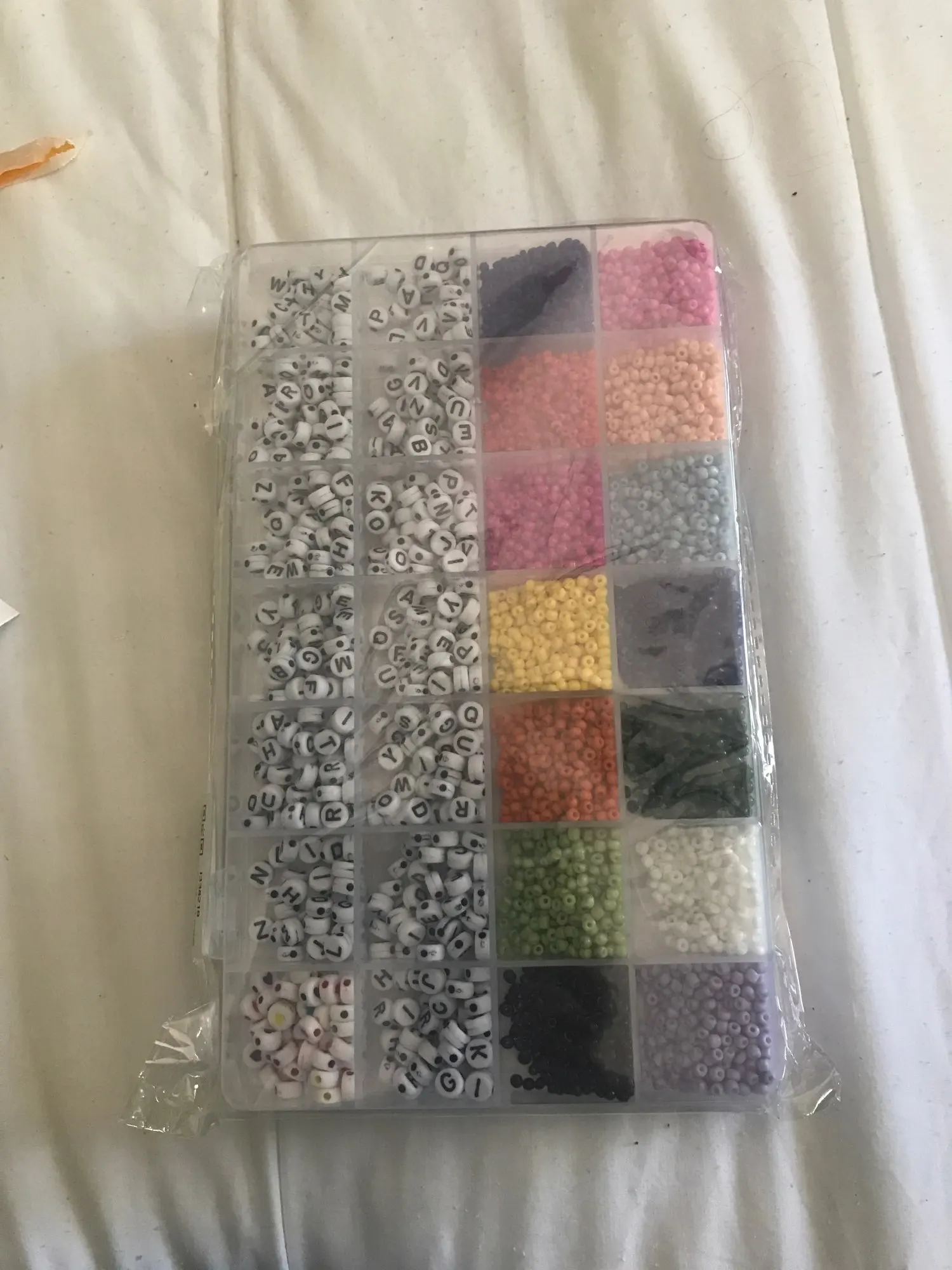 Очень красиво упаковано. Все подошло в аккуратном и организованном виде в этом пластиковом ящике для хранения. В комплект входят коготь лобстера, а также пластиковые хрустальные нити. Бусины с буквами не были даже в количестве, некоторые из них были более 6, а некоторые-только 1 или 2.