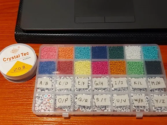 Доставка чуть больше месяца, но это не портит впечатление о товаре! Сам контейнер почти в целости,немного сломана катушка, но леска не повреждена, цвет бусин очень красивый и приятный! На остальных бусинах хорошо пропечатаны буквы! Покупкой доволен! Всем советую!)