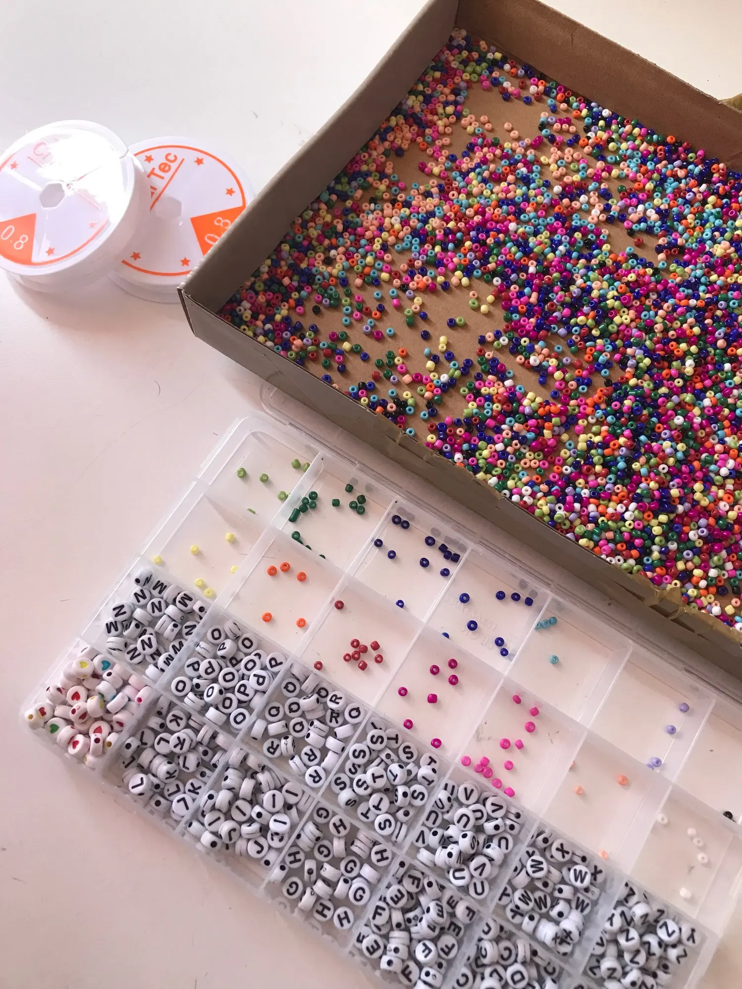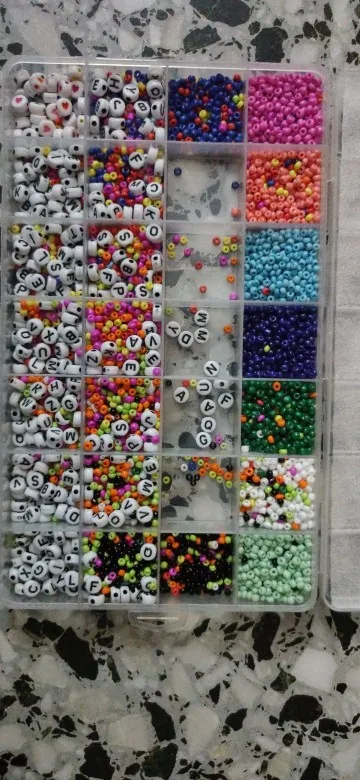 Они оторвались по дороге, и все было свернуто, но я заказал его и все :) шарики нерегулярного размера и цвета могут отличаться от изображения, но они в порядке (для браслета на фото, который я загрузил, я также использовал другие шарики, которые у меня уже были, они не все из этого комплекта).
