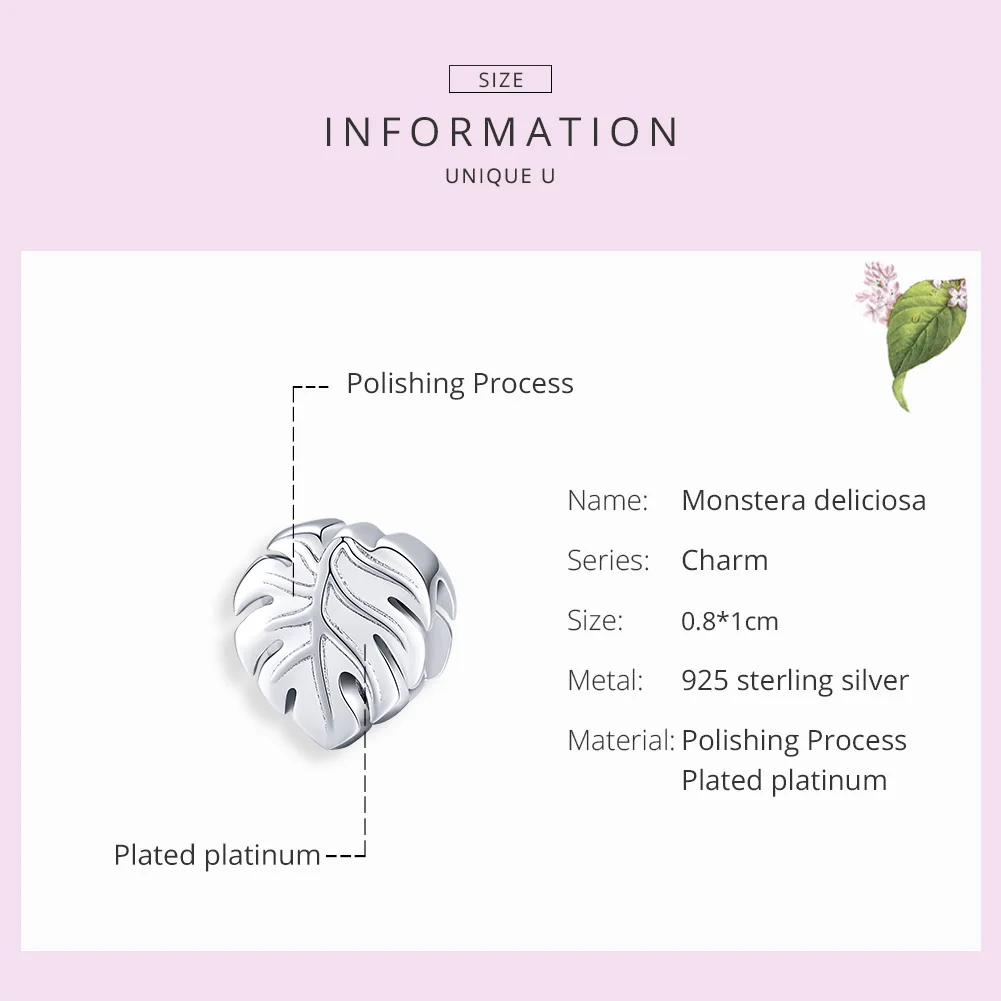 WOSTU, 100% 925 пробы, серебряные бусины Monstera Deliciosa, заводское очарование, подходит для оригинального браслета, кулон, модные свадебные украшения CTC141