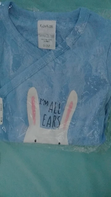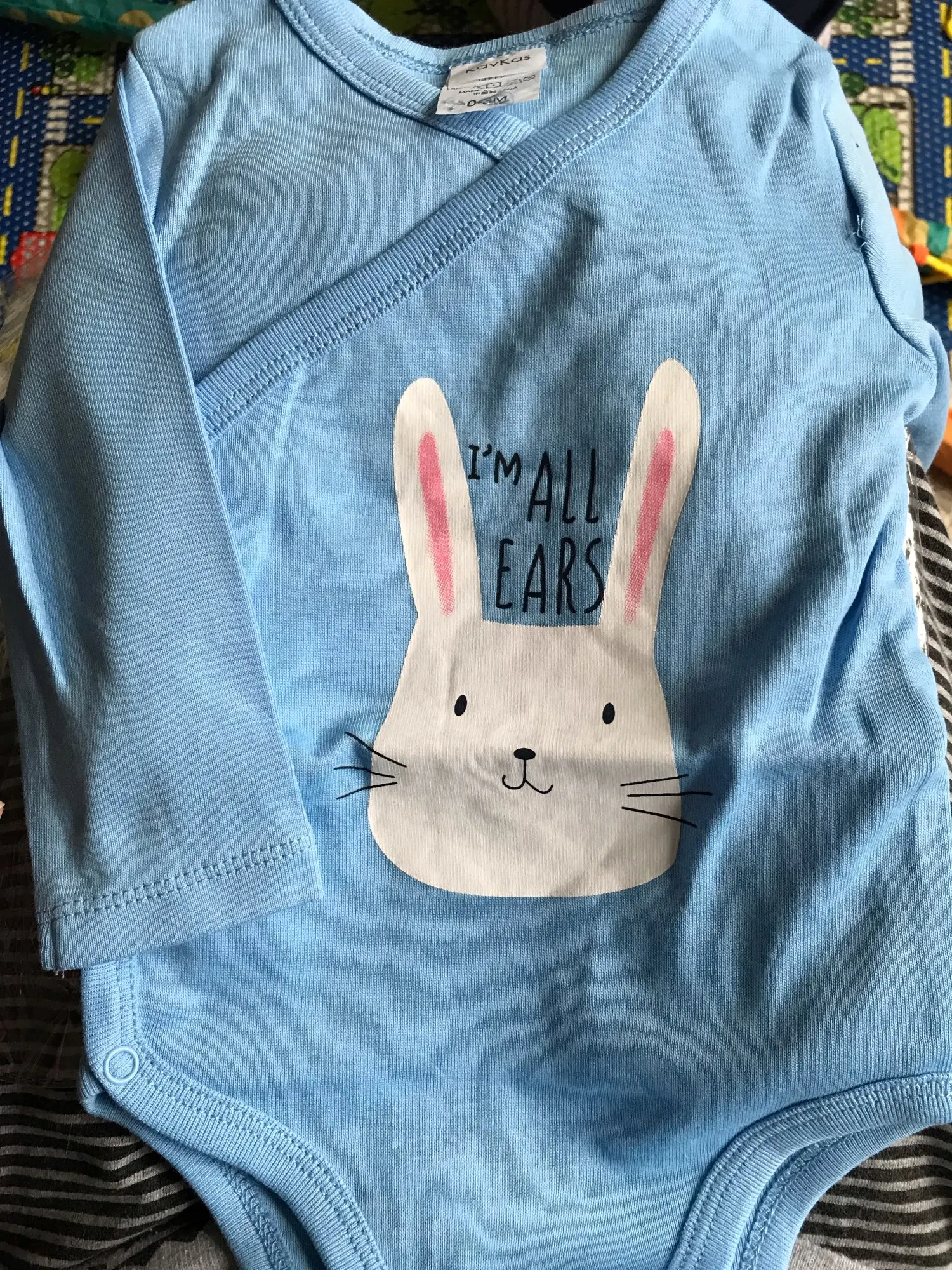 Заказывала размер 0-3 мес, но после оплаты товара продавец отписался что этого размера в такой расцветке нет и предложил выбрать другую расцветку или другой размер. Я выбрала больший размер 6-9мес. Качество материала хорошее, хб. Мне кажется что маломерит. До РБ прибыл товар за 3 недели.