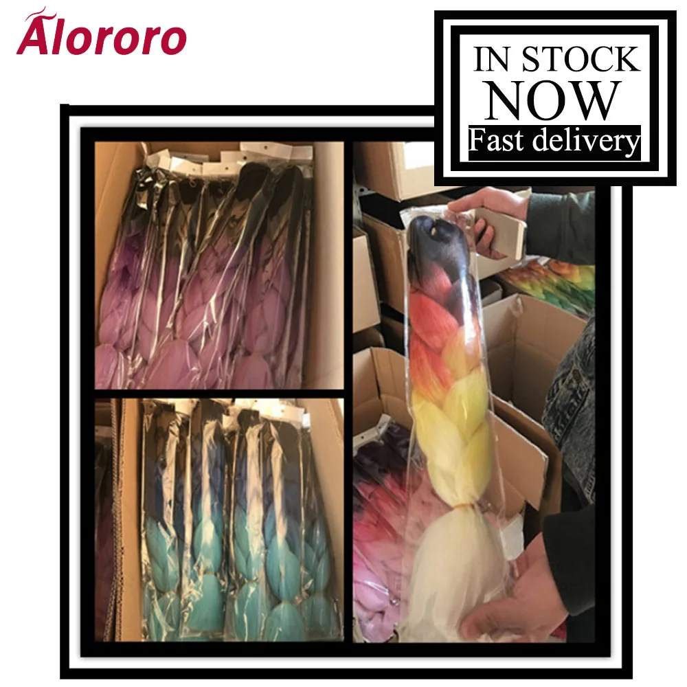 Alororo афро Омбре плетеные синтетические волосы для наращивания 24 дюйма Розовый Синий Красный блонд Джамбо плетеные волосы оптовая продажа