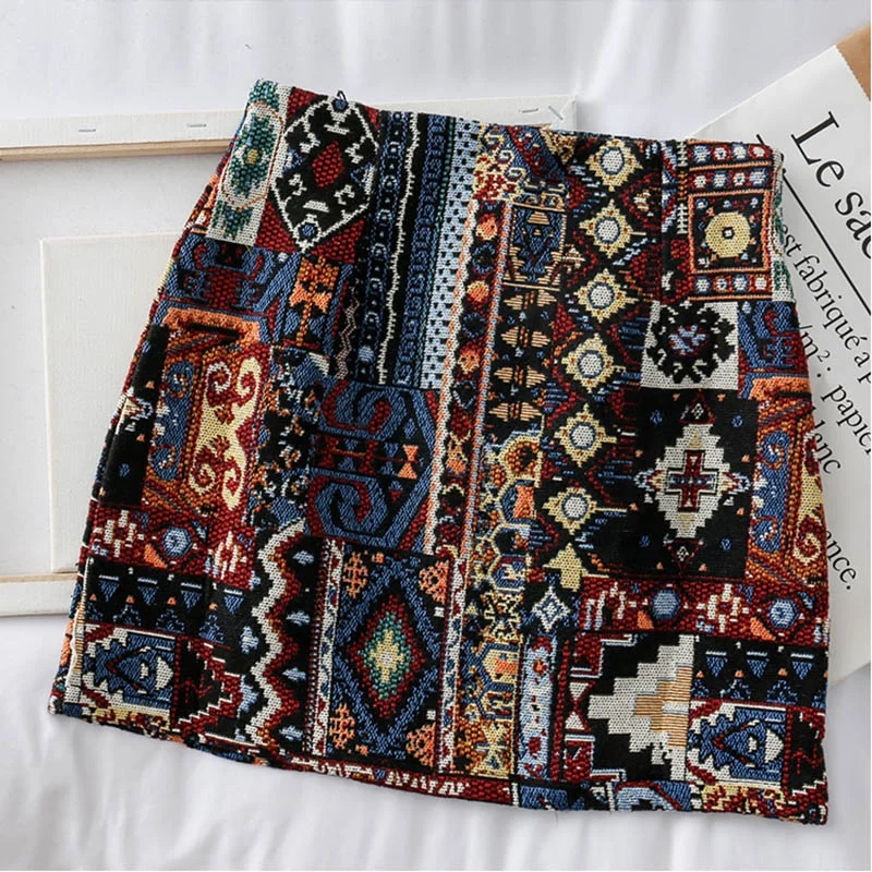 HELIAR женские богемные Юбки Вышивка A-Line мини-юбки Chic с принто...