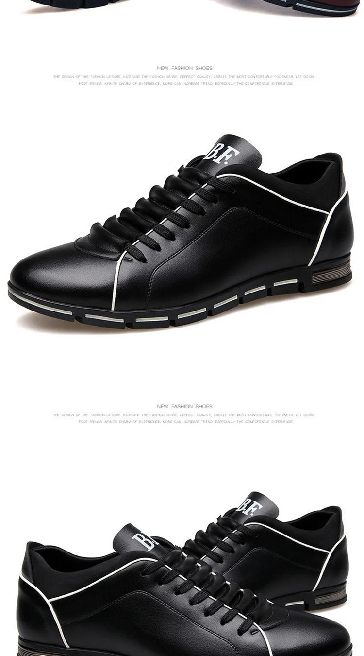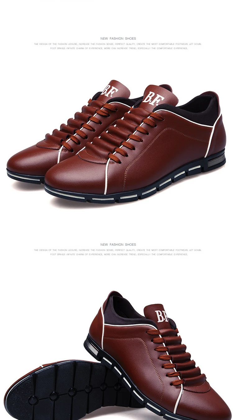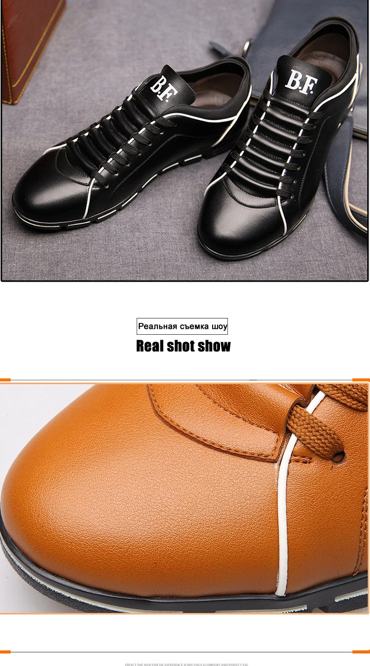 Кроссовки мужские кожаные, с круглым носком, весна-осень