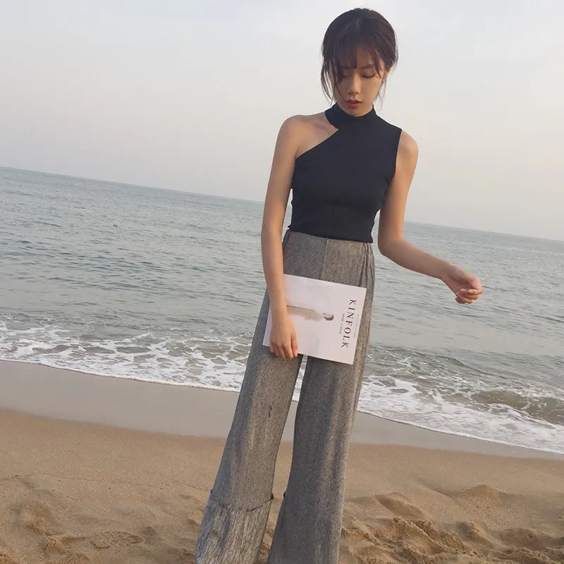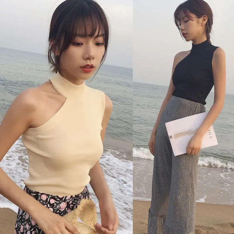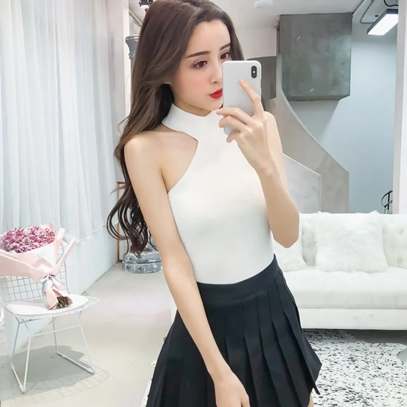 Майка женская трикотажная без рукавов, пикантный топ с лямкой через шею, повседневная Облегающая майка, на лето