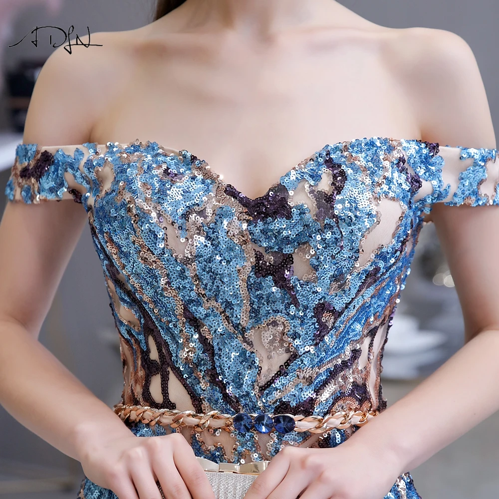 Сексуальное вечернее платье без рукавов с золотыми и синими блестка...