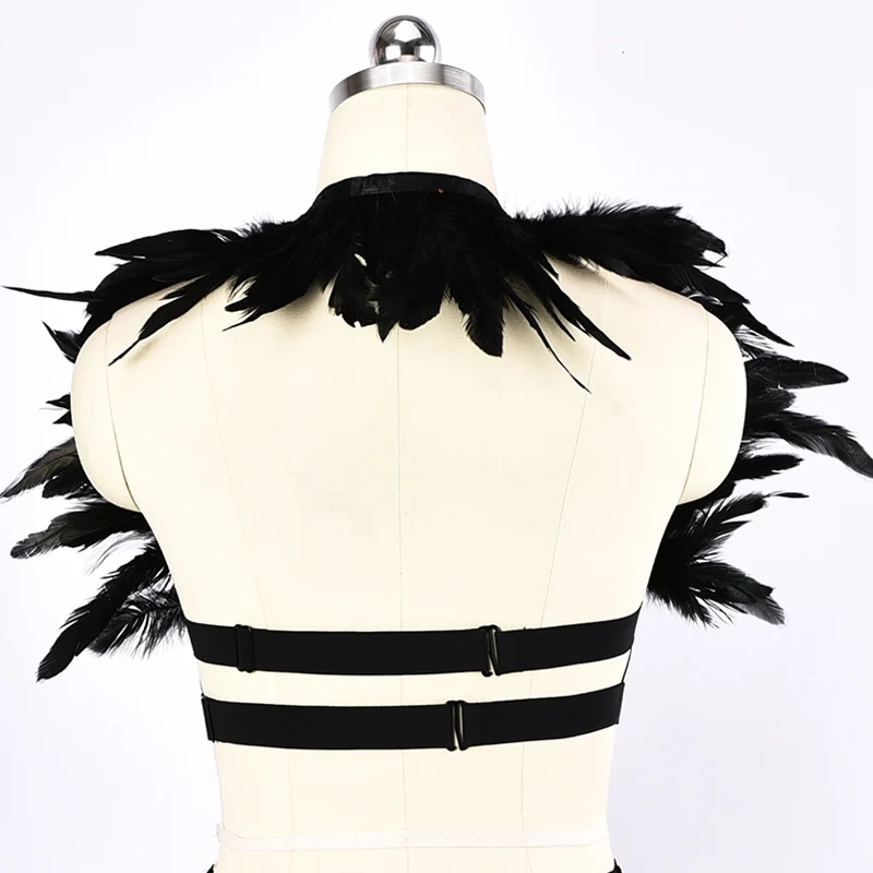 Готическая портупея с перьями, аксессуары для одежды, черный воротн...