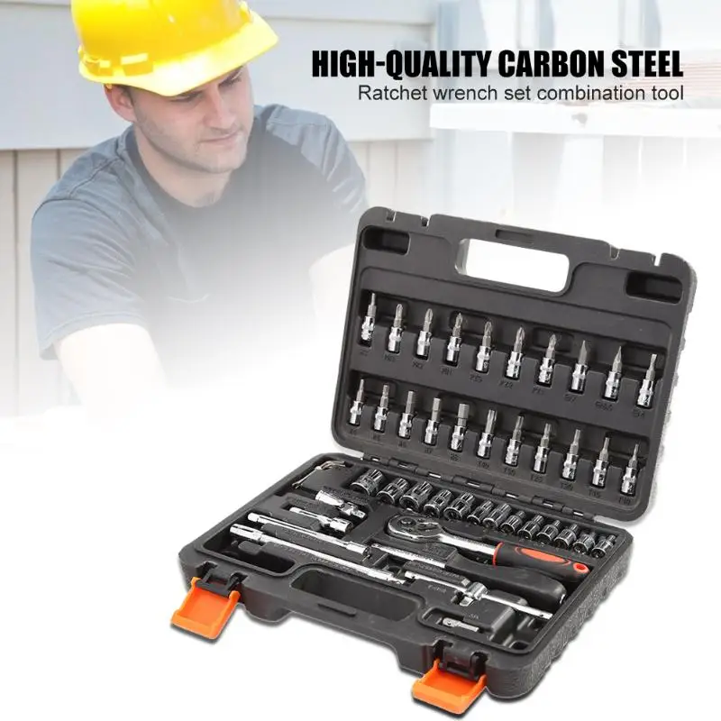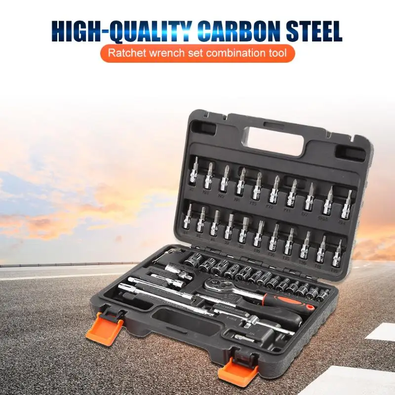 Набор торцевых гаечных ключей, многофункциональный инструмент с храповым механизмом для ремонта автомобиля, 46 штук
