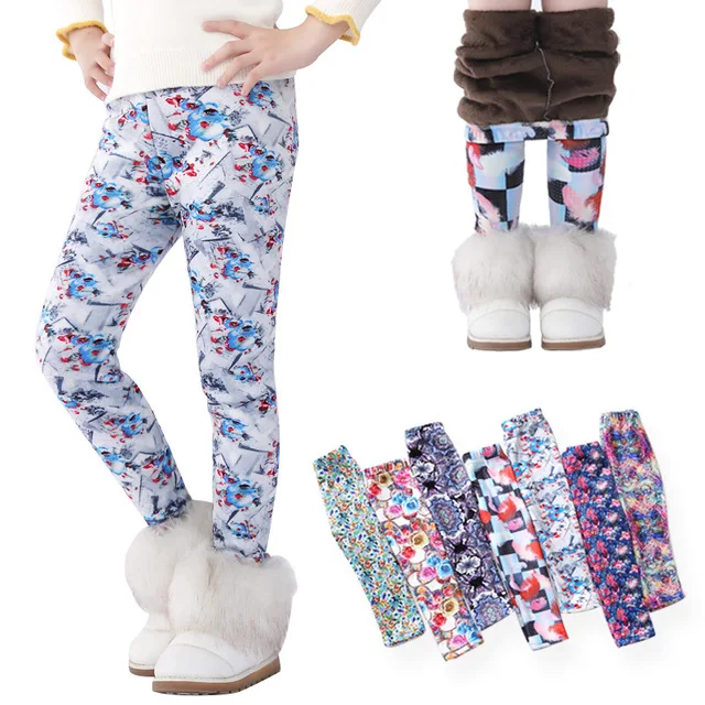 VEENIBEAR/плотные теплые штаны для девочек; Бархатные леггинсы с цветочным принтом; Детские зимние штаны