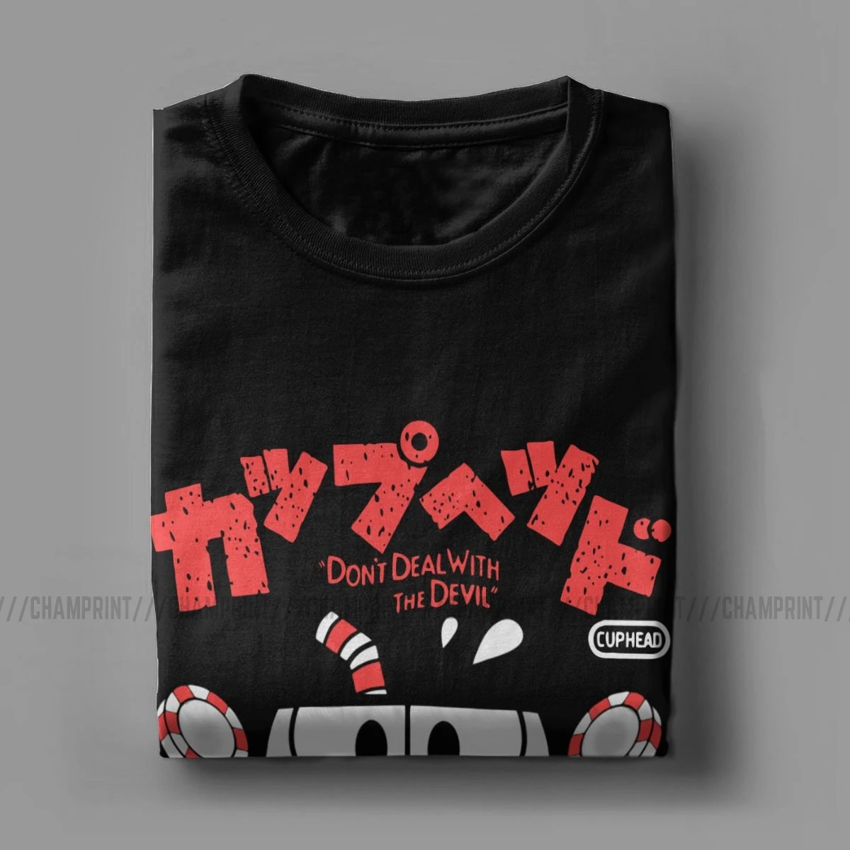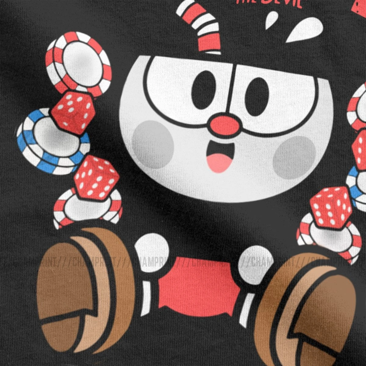 Футболка Cuphead Chibi для мужчин, 100% хлопок, Винтажная футболка, игровой Кубок мугмана, мышь, мультфильм, анимация, игровые футболки с коротким рукавом