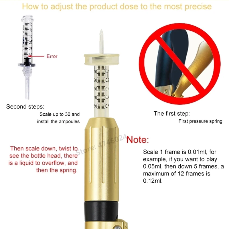 2 в 1 неинвазивный небулайзер мезо инъекционный пистолет гиалурон ручка 0,3 мл и 0,5 мл две головки золото Гиалуроновая кислота ручка для заполнения губ инъекции