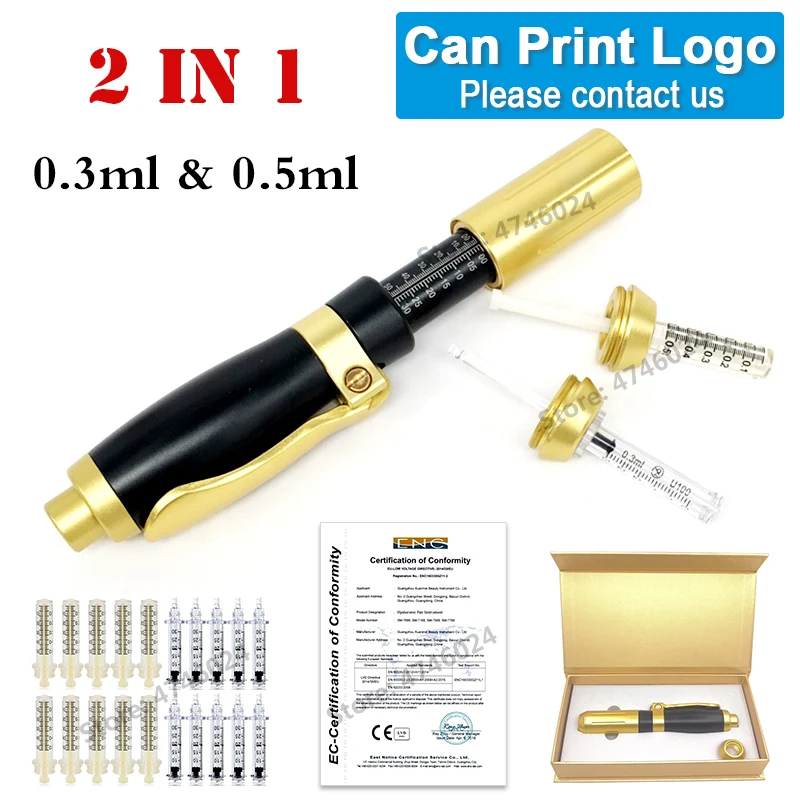 2 в 1 неинвазивный небулайзер мезо инъекционный пистолет гиалуроновая ручка 0,3 мл и 0,5 мл две головки золотая ручка с гиалуроновой кислотой для наполнения губ инъекции