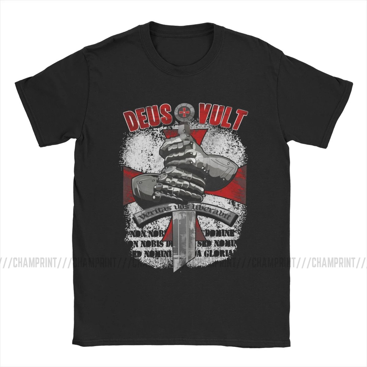 Deus Vult Templar меч крест храмовник футболка Для мужчин хлопковая Футболка меч крестоносца солдат футболки короткий рукав размера плюс