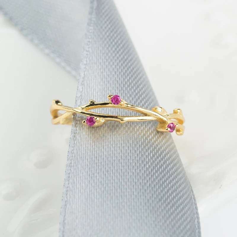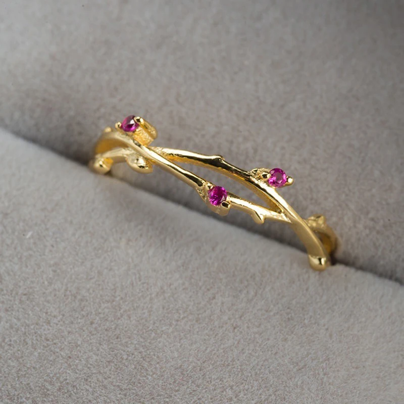 Тонкая Повязка на палец Корона из шипов, инкрустированная красным корундом, кольцо в виде ветки, золотистая Цветочная ветка, ювелирное изделие для женщин, Подарочная бижутерия