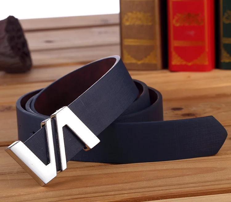 Мужской роскошный кожаный ремень с буквенным двойным v-образным разрезом, металлический Гладкий ремень с пряжкой