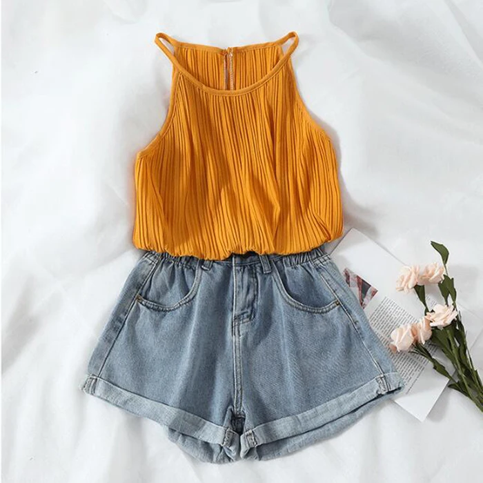 Женские джинсовые шорты, повседневные свободные шорты с высокой талией, с эластичным поясом, широкие, 2020