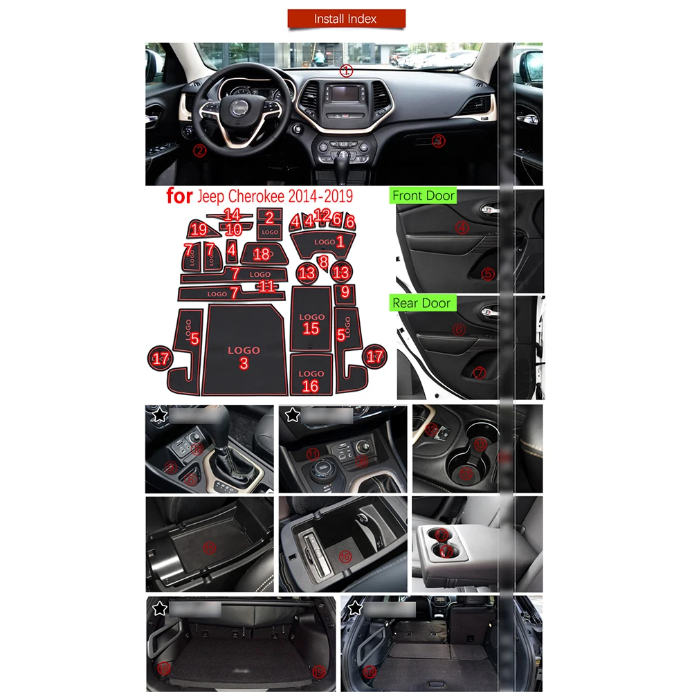 Для Jeep Cherokee KL 2014 2015 2016 2017 2018 2019 резиновый противоскользящий коврик для двери, паз, подстаканник, слот для ворот, автомобильные аксессуары