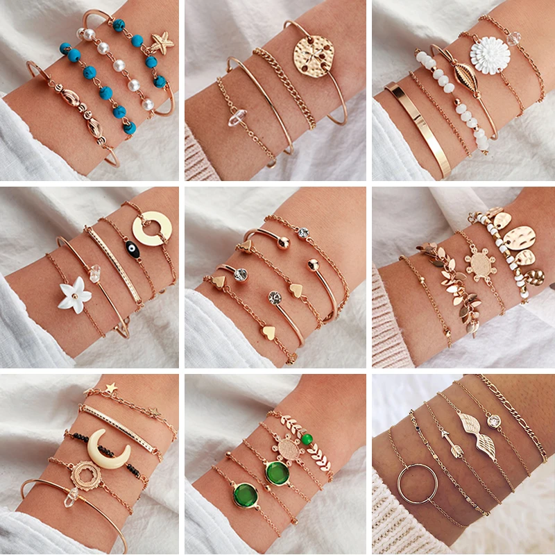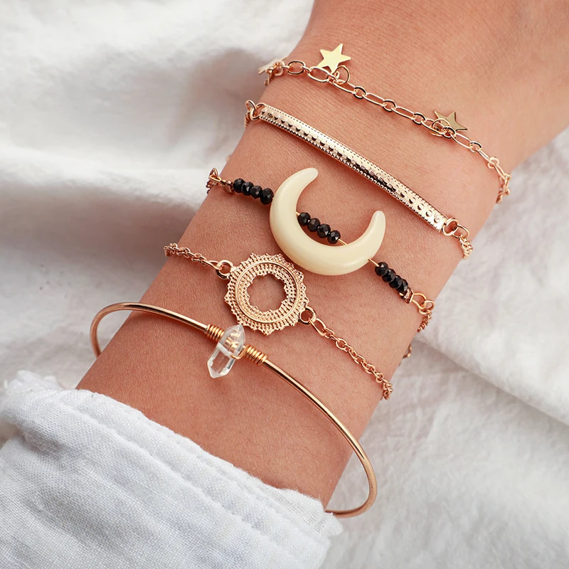 Женский винтажный браслет Tocona в богемном стиле, изящный золотистый браслет с цветами, звездой, Луной в стиле бохо, индийские украшения, аксессуары