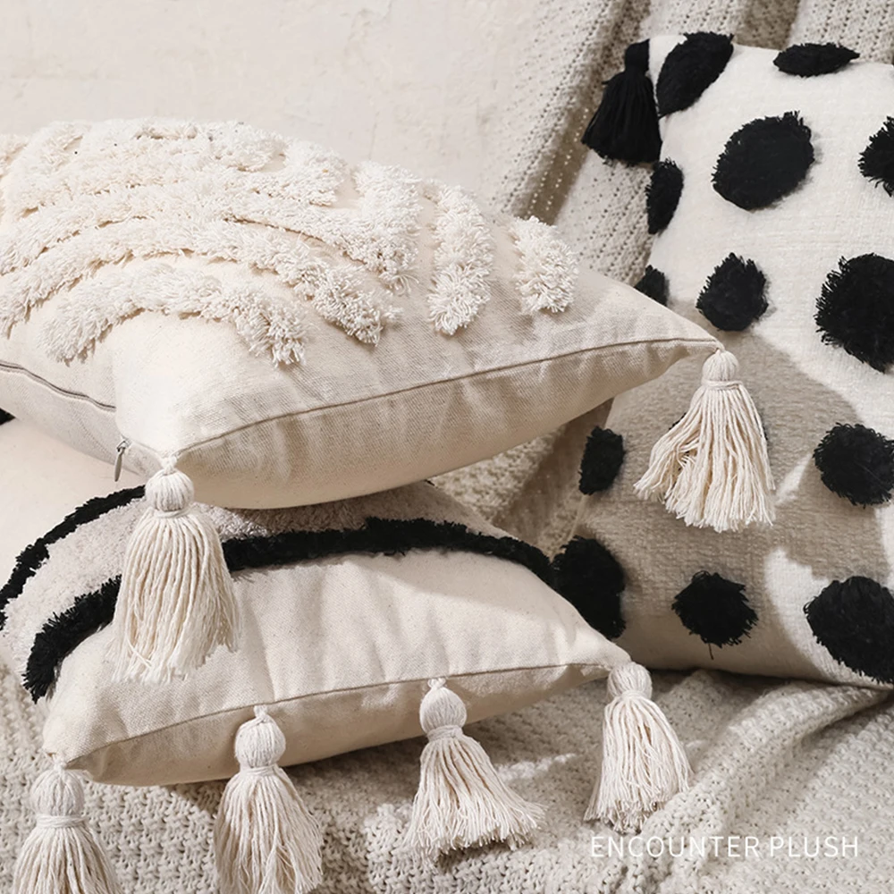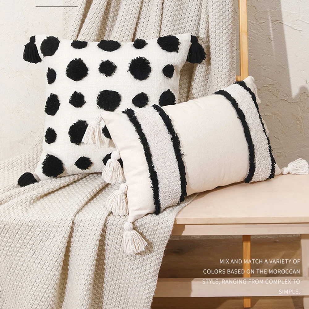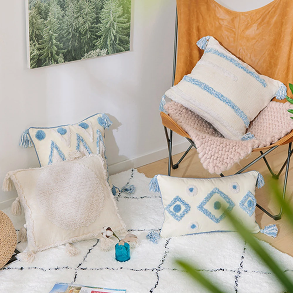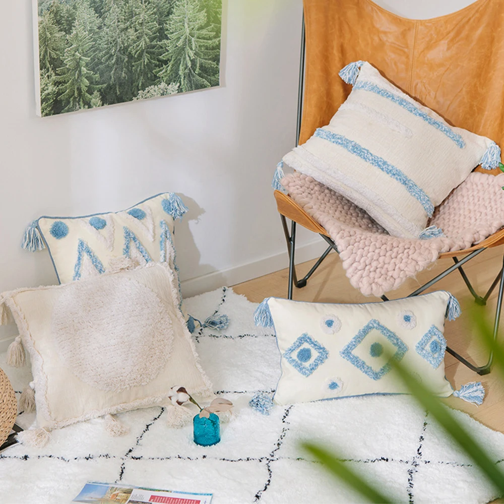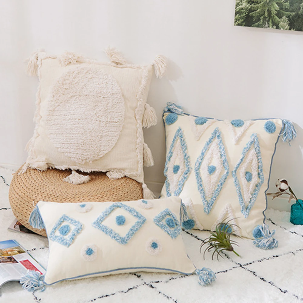 Наволочка в стиле бохо, подушка ручной работы, с плюшевыми синими бриллиантами, с милыми кругами, марокканская, разноцветная, 40x45 см, для домашнего декора