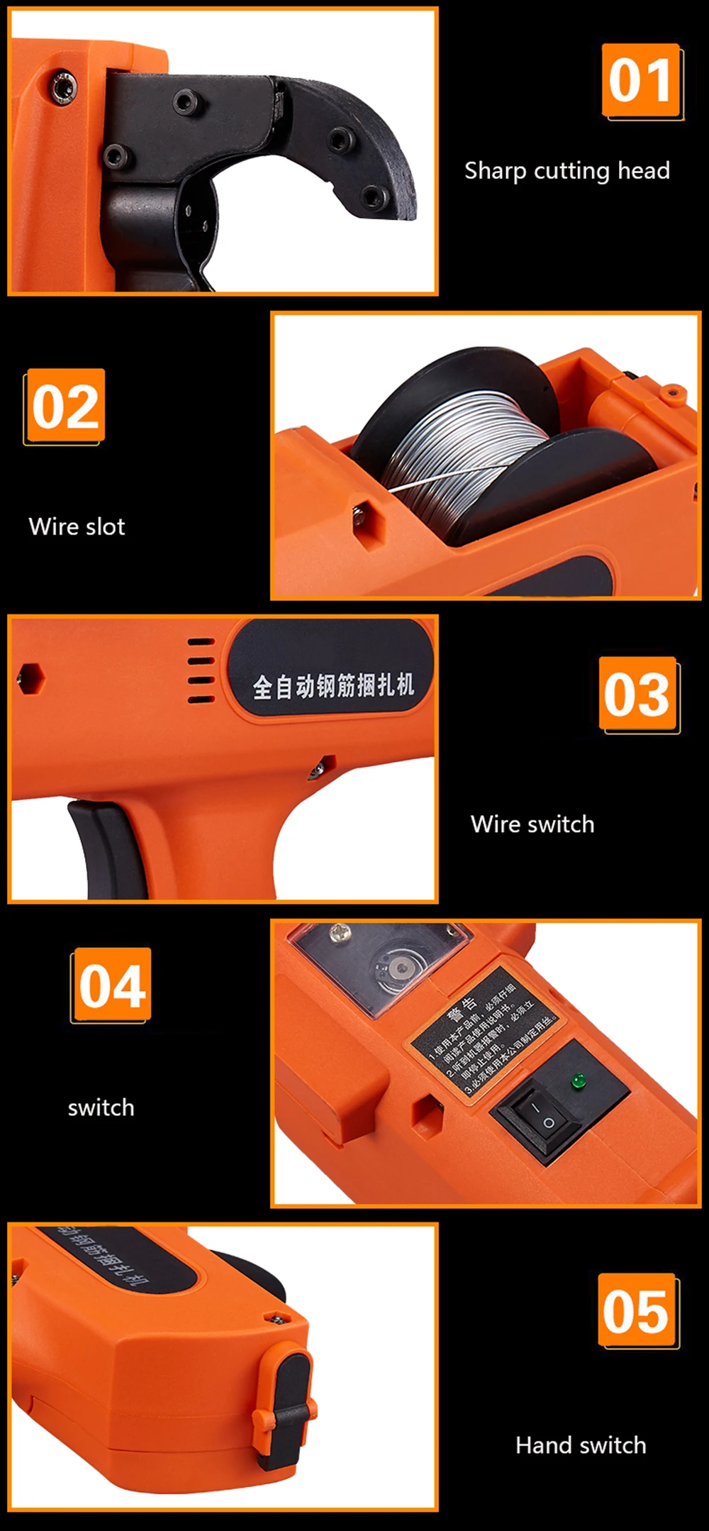 2. Он может автоматически завершать все этапы стальных полос, широко используется в железобетонных конструкциях, мостах, дорогах, туннелях и других усиленных работах, используемых для строительного рынка, в том числе для гражданского строительства, напольная труба, нагревательная напольная сетка, стальной стержень, И т. Д. Может заменить ручную связывающую сталь. Она может экономить в 3-5 раз, чем мощность человека вручную.