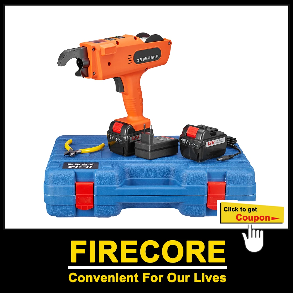 FIRECORE Автоматическая машина для обвязки арматуры FIRECORE, 12 В, 3000 мАч, беспроводная, 2 литиевых аккумулятора, 8-34 мм