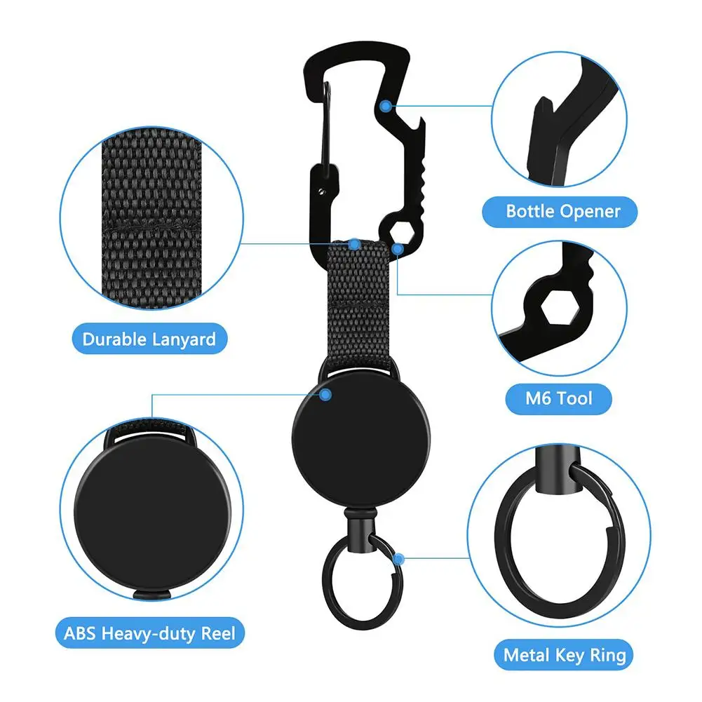 Выдвижной значок на цепочке для ключей, 2 шт., многофункциональная пряжка-карабин, выдвижной ремень, зажим для ключей со стальным кабелем для мужчин на открытом воздухе