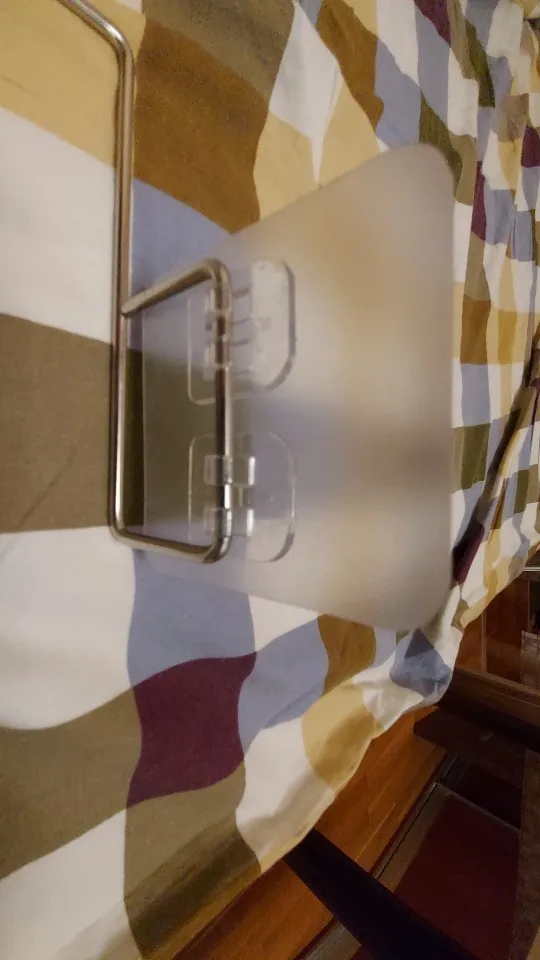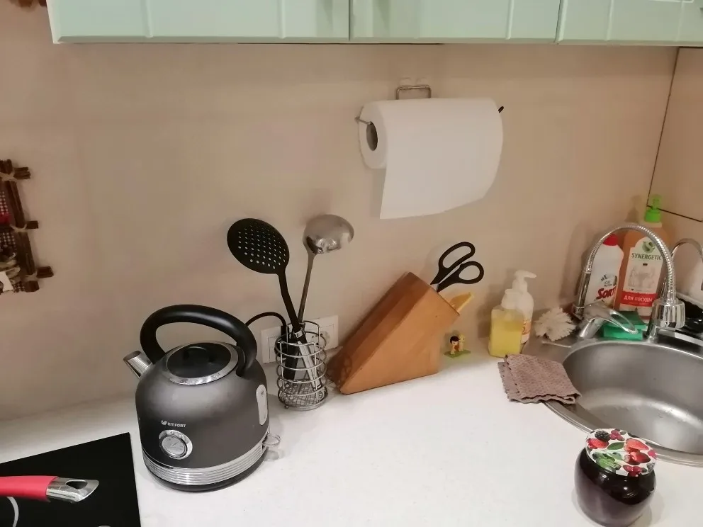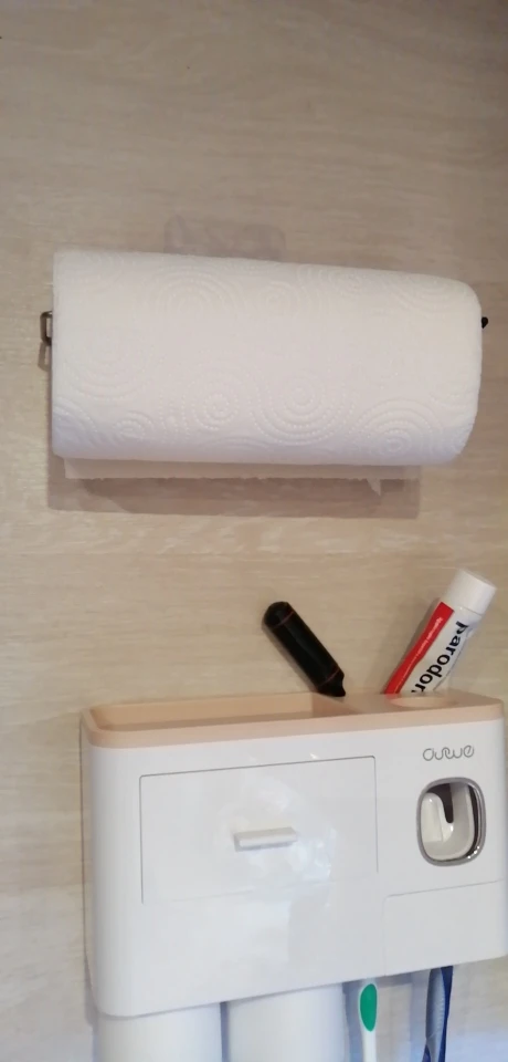 Отличный держатель. Легко крепится. Единственно мне не очень понравился большой крепежный элемент, но я не догадалась его немного обрезать. А он с первого раза приклеился намертво на плитку, не смогла его отлепить. Учитывайте это и заранее примерьте варианты места расположения, а уже потом снимайте защитную пленку с липкой основы.