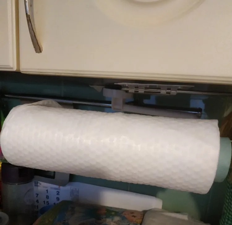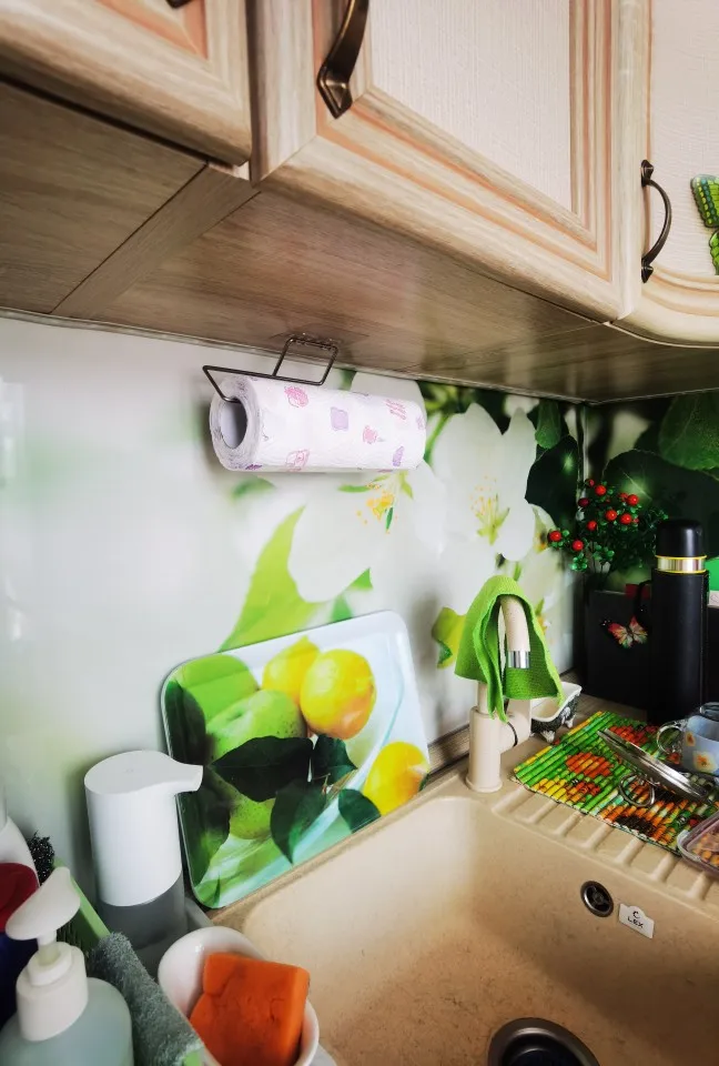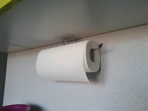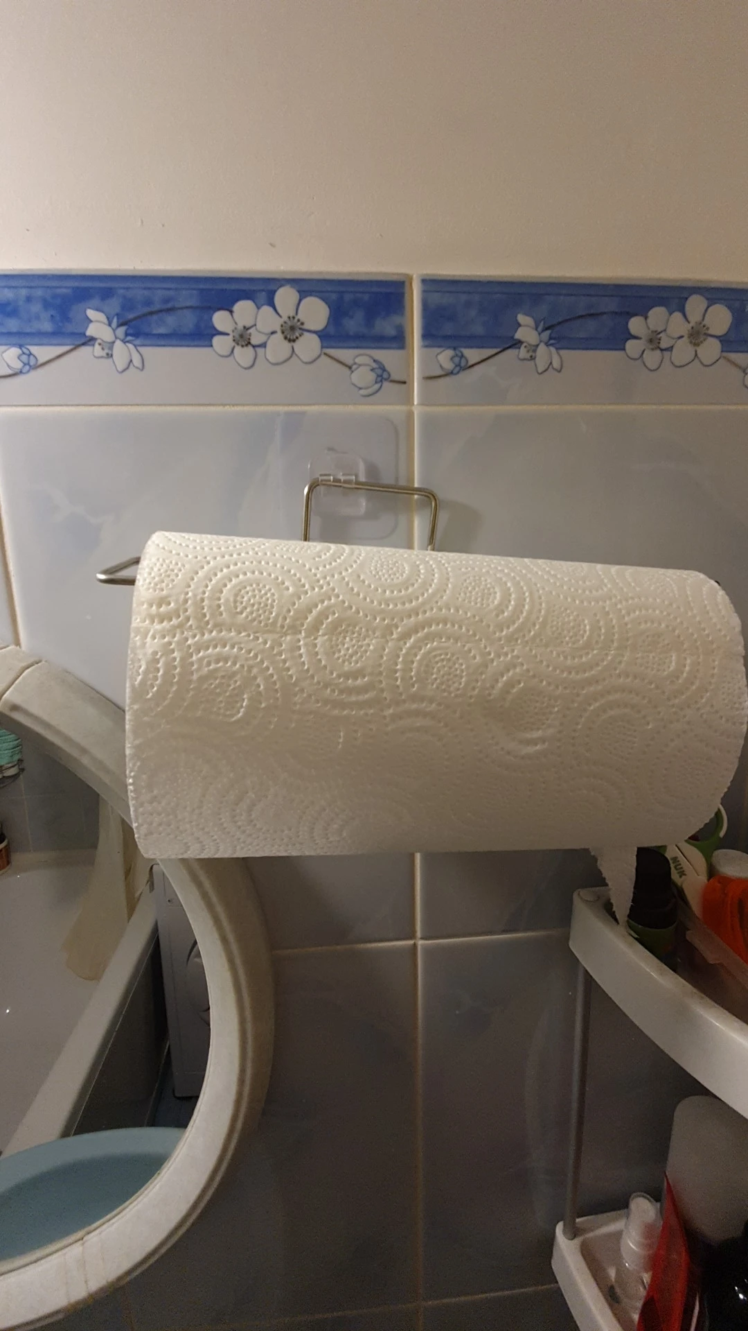 удобная штуковина, приклеила на стену, стандартный рулон помещается нормально!
