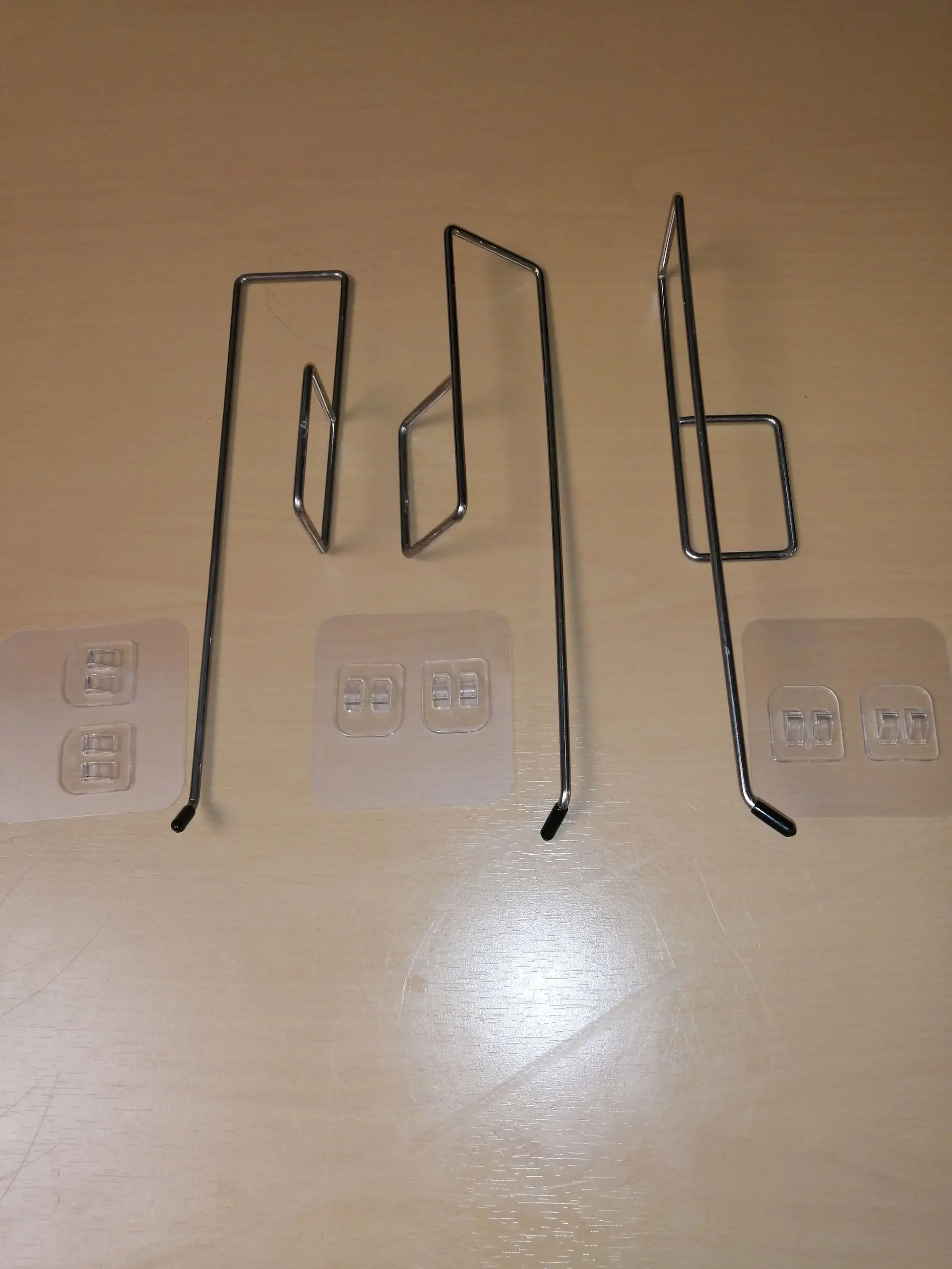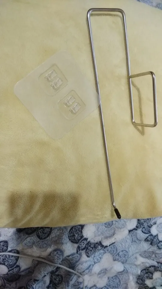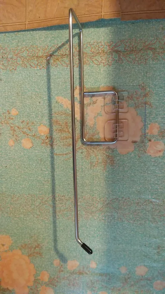 Отправка и доставка быстрая в сборной посылке. Качество металла хорошее, шершавостей нет, на конце прорезиненная часть. Крючки (2) и клеящиеся элементы внушают доверие, их можно разрезать при желании,но клей нанесён на всю площадь пластика(!!!!). Можно вешать как на боковые поверхности, так и на нижнегоризонтальные. Рекомендую.