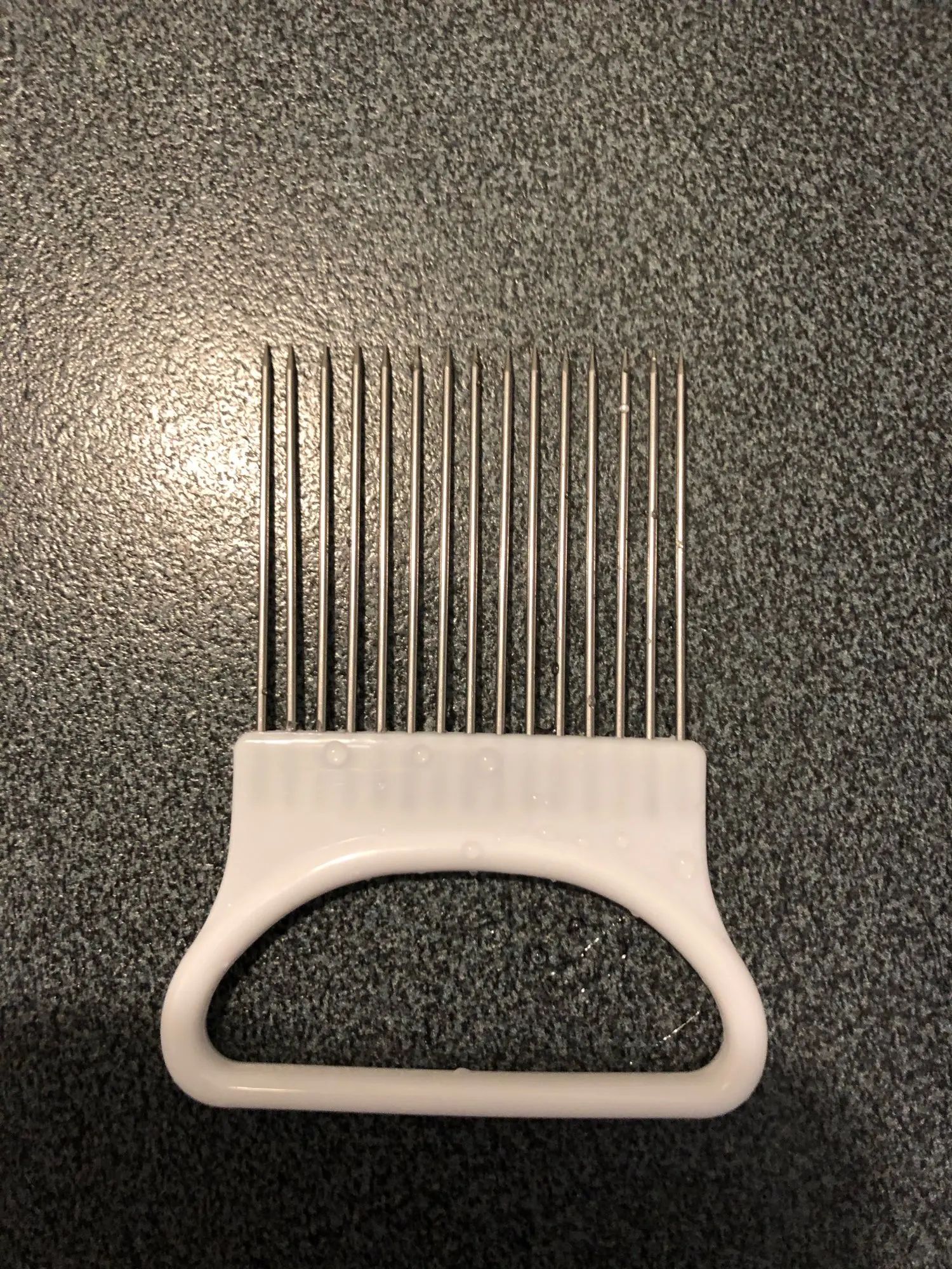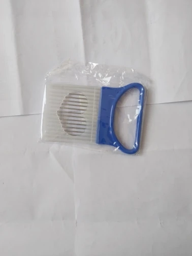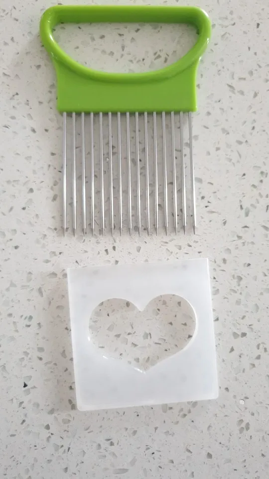 I Just received this item after two months, the delivery was very long to Belgium, but due to current situation I suppose I have to understand but I like this thing. This stainless steel onion needle onion fork is also surely suitable to cut vegetables fruit, also tomatoes, you can easily do slicer, I bought it because I want my kids to help me in the kitchen and not to stress that they could cut fingers. I did not use it yet, so after using it I will add an extra comment, but for now I really like it it was perfectly packed.