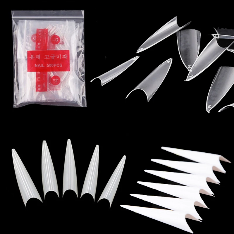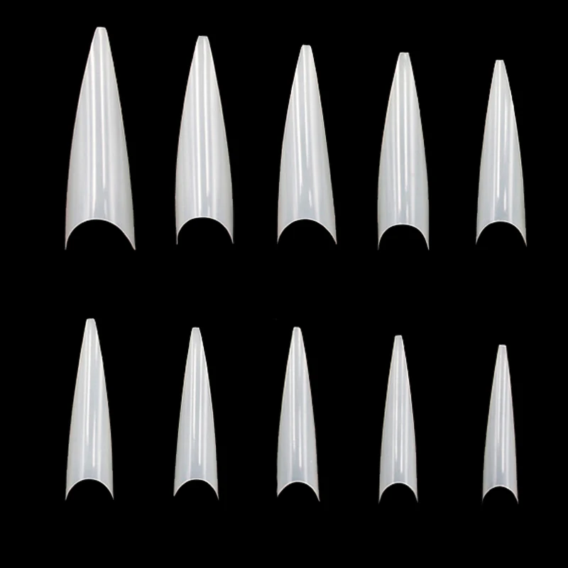 Накладные ногти на шпильке, с острым полным покрытием, натуральный стиль, для УФ-лампы, для маникюра, для салона, для французского акрила, 500 шт., 10 размеры, дизайн ногтей типсов