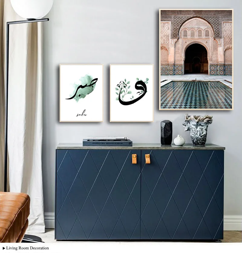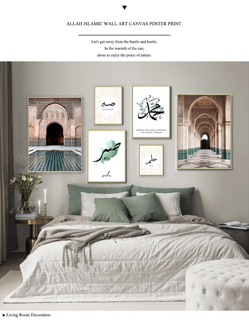Марокканская арка Холст Картина Исламская художественная стена с цитатой плакат Хассан II мечеть Sabr Bismillah печать арабо мусульманское украшение картина