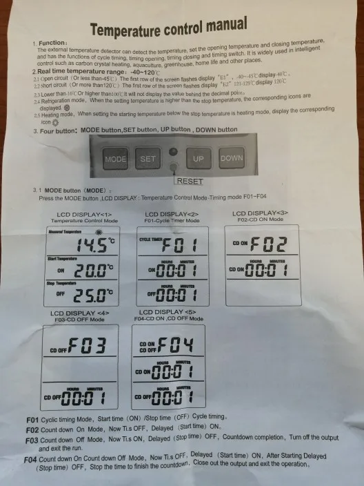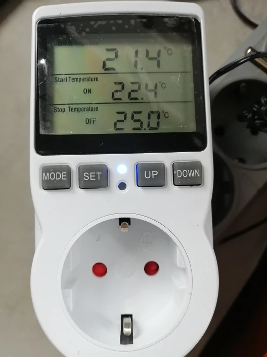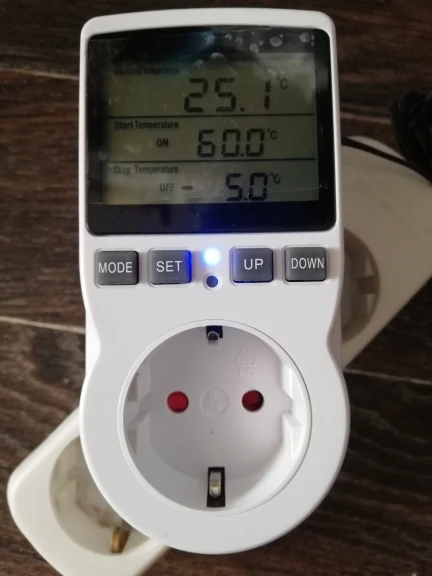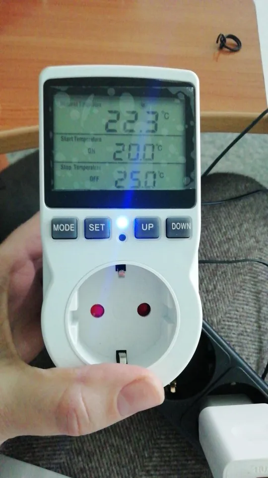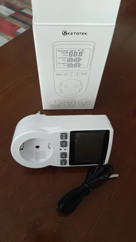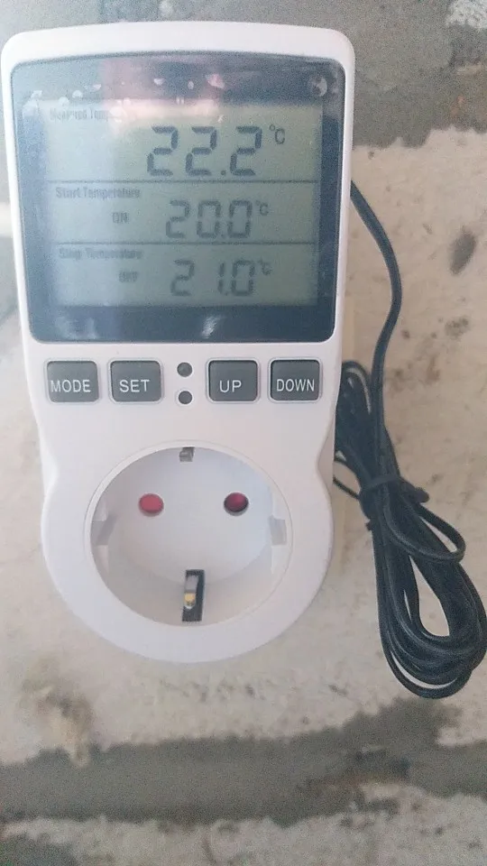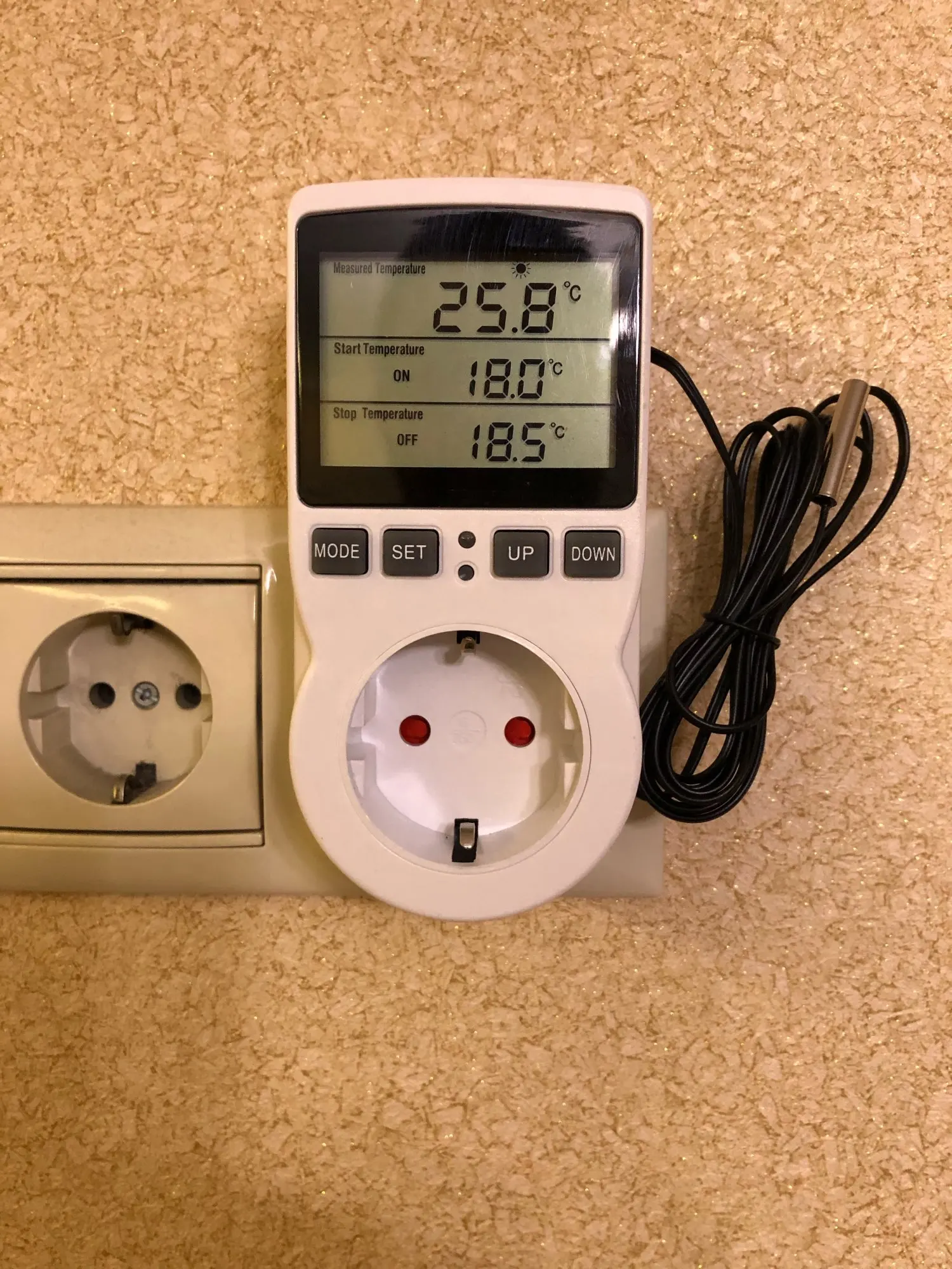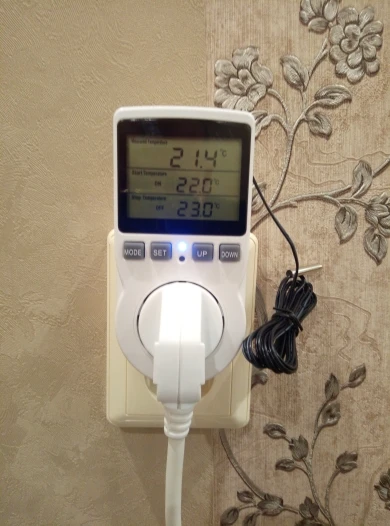 Заказала 2 штуки на дачу. Ввглядит хорошо. Достались за 918.94 штука. Дешевле 1800 не видела даже на яндекс маркете. Датчик длина чуть больше 1.70. Заводская настройка включение при +20 выключение при +25. Термометр работает почти точно. Инструкция на английском. Разберусь. Буду выставлять температуру 5 на 10 Я довольна. Рекомендую. Доставка уложились в месяц.