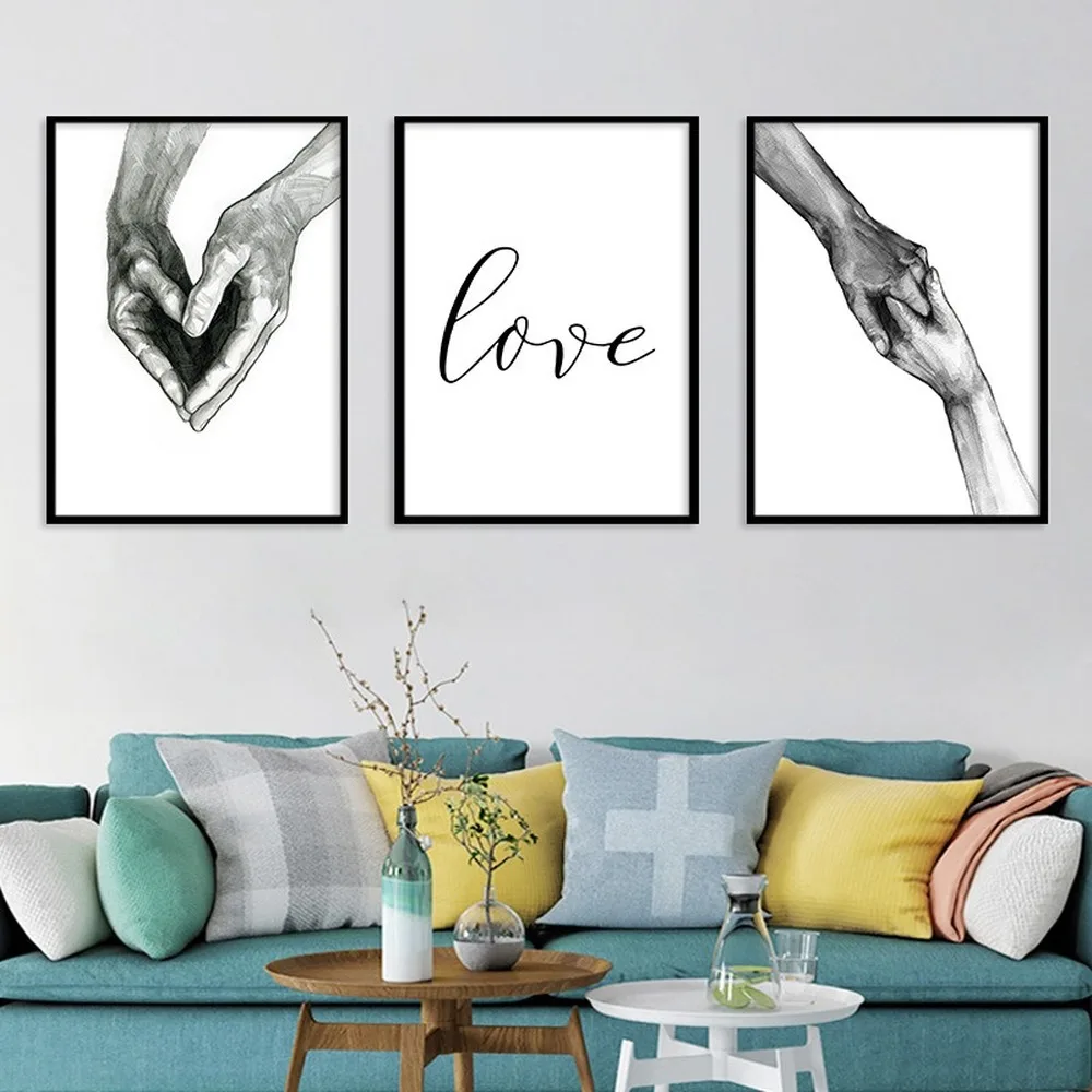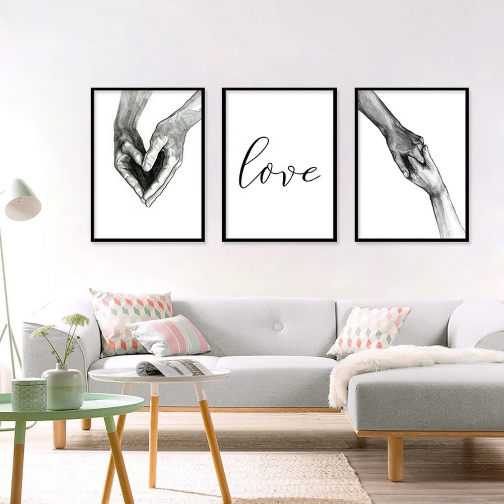 Черно-белый простой ручной работы любовник Холст Картина любовь пара любовь-обещание постеры настенные картины для гостиной домашний декор