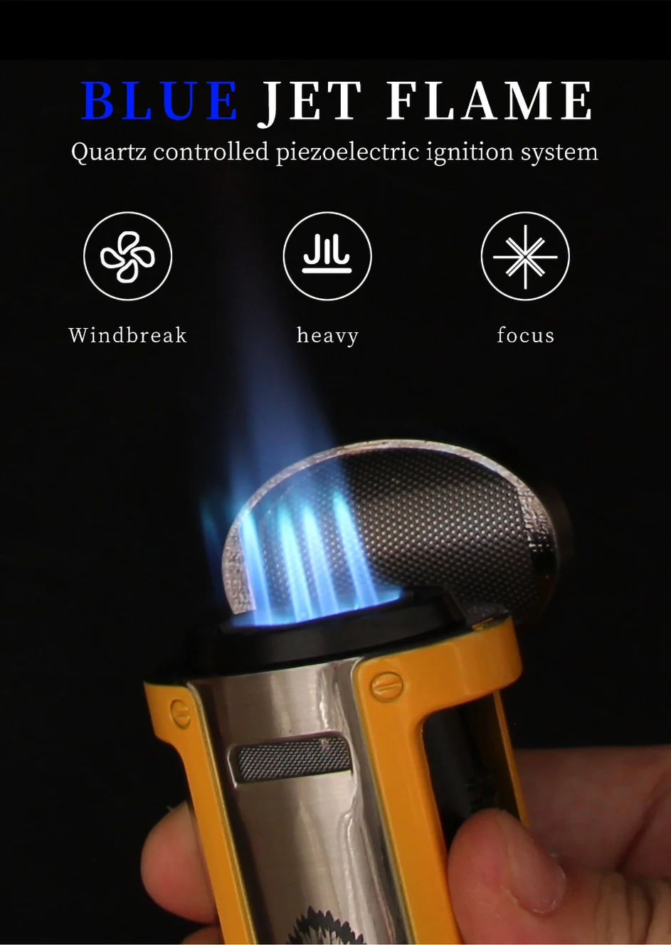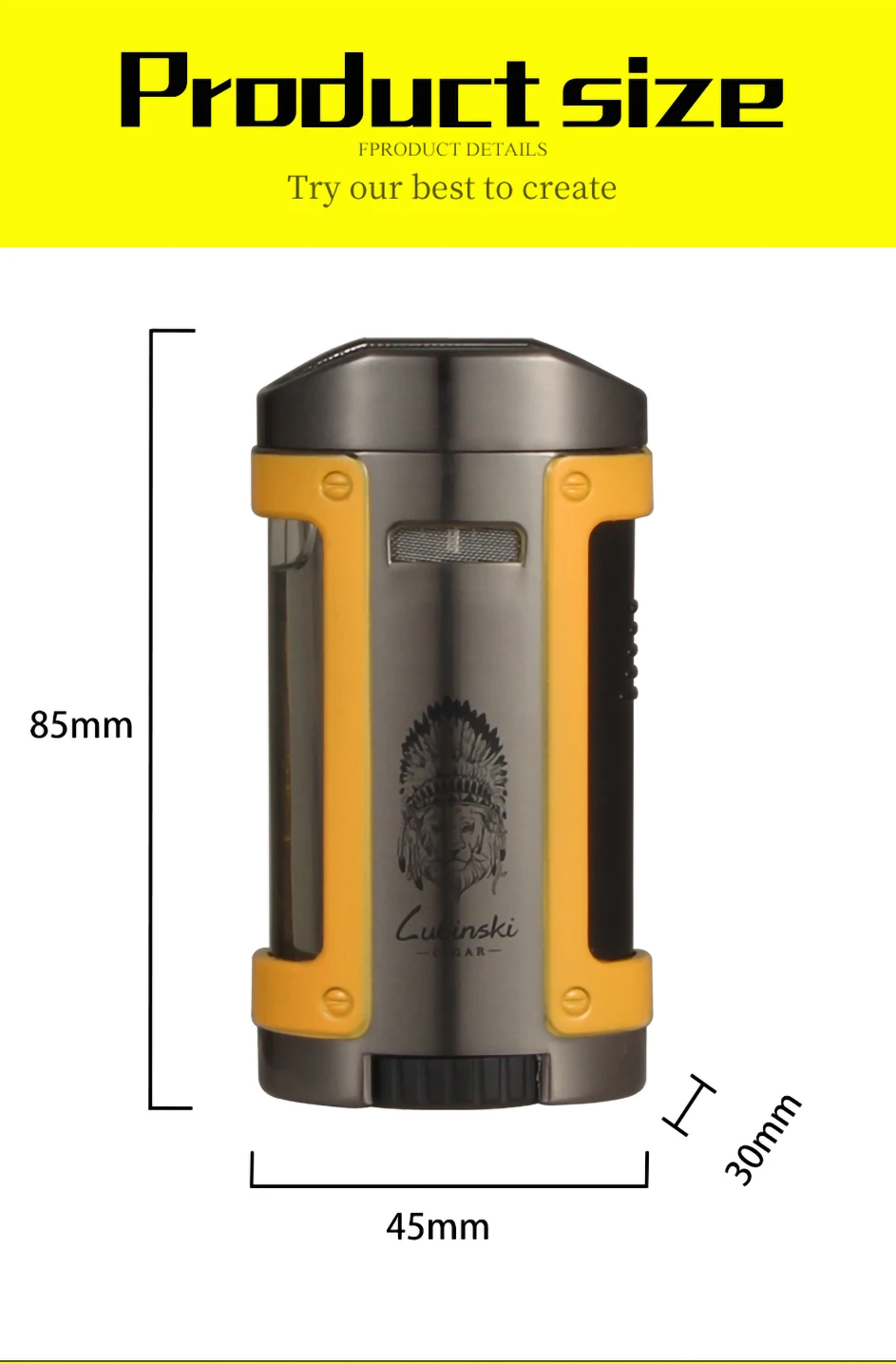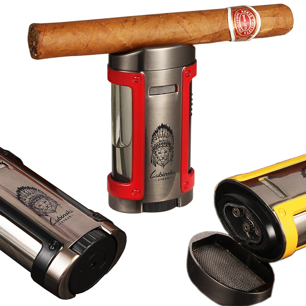 LUBINSKI металла с питанием от прикуривателя с 4 Jet ветрозащитный фонарь зажигалка бутан сигареты газовая зажигалка Портативный встроенный сигары держатель подставка