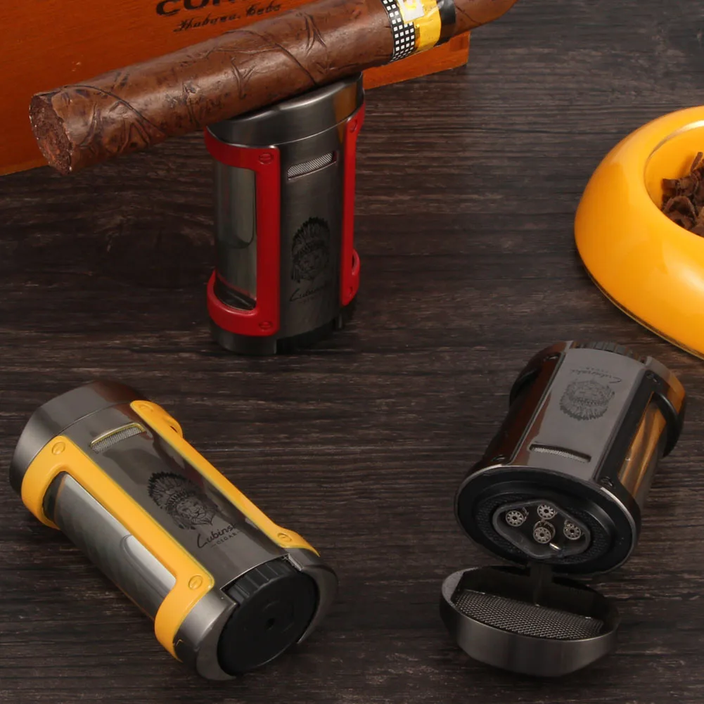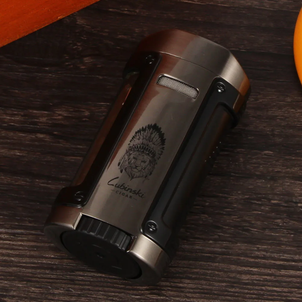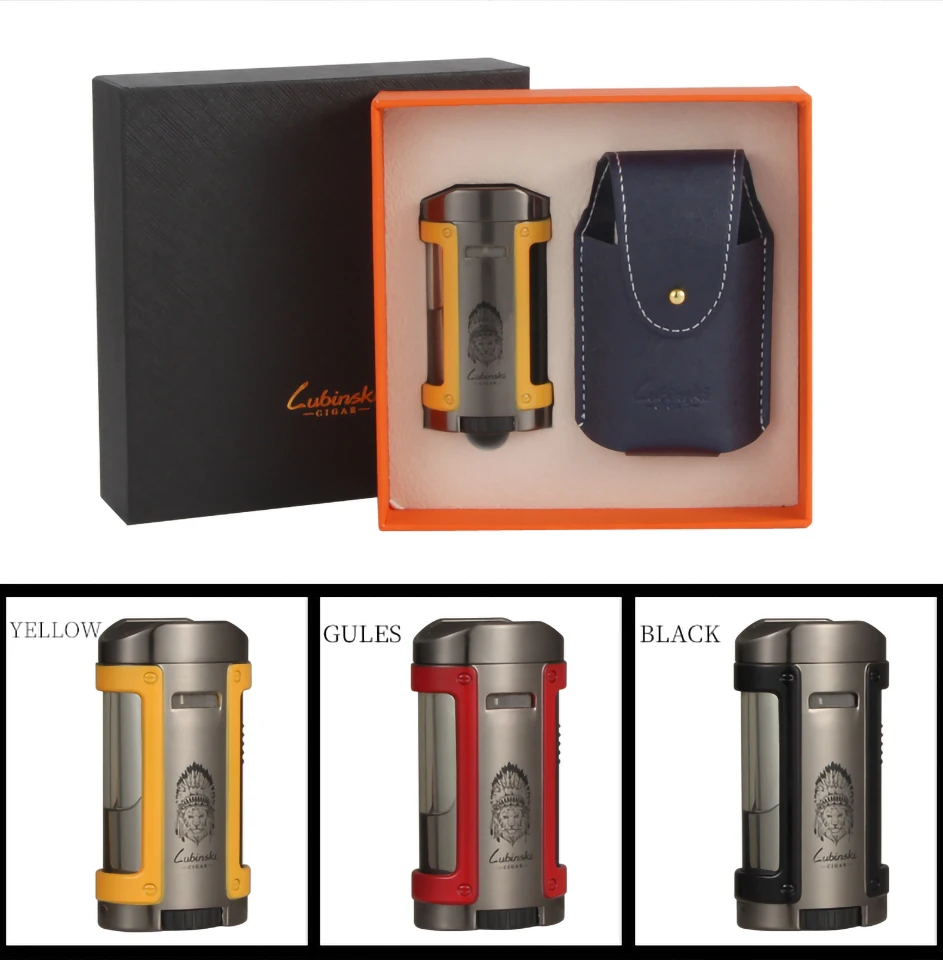 LUBINSKI металла с питанием от прикуривателя с 4 Jet ветрозащитный фонарь зажигалка бутан сигареты газовая зажигалка Портативный встроенный сигары держатель подставка