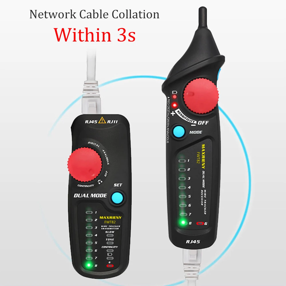 Анализатор MAXRIENY FWT82, профессиональный цифровой аналоговый детектор для обнаружения сетевых кабелей, трекер с разъемами RJ45 и RJ11, Ethernet, LAN