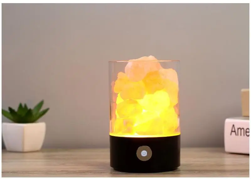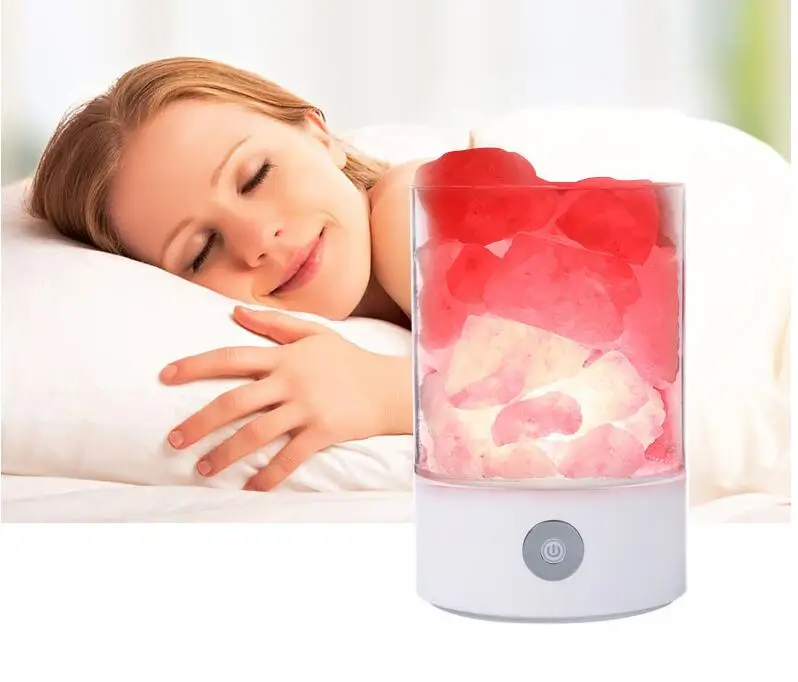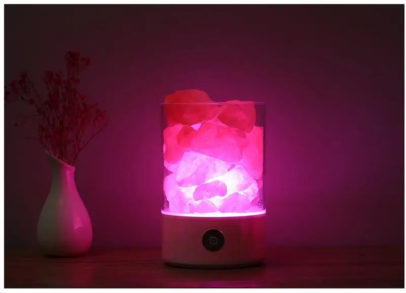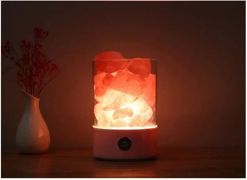 USB Мощность 4 режима сенсорный переключатель красочные гималайской соли кристалла камень 3 Вт круглая светодиодная галогеновая ночной Светильник очиститель воздуха лампа