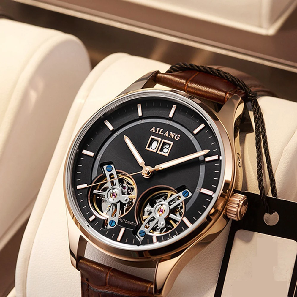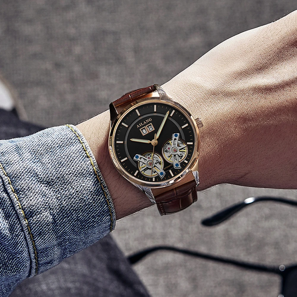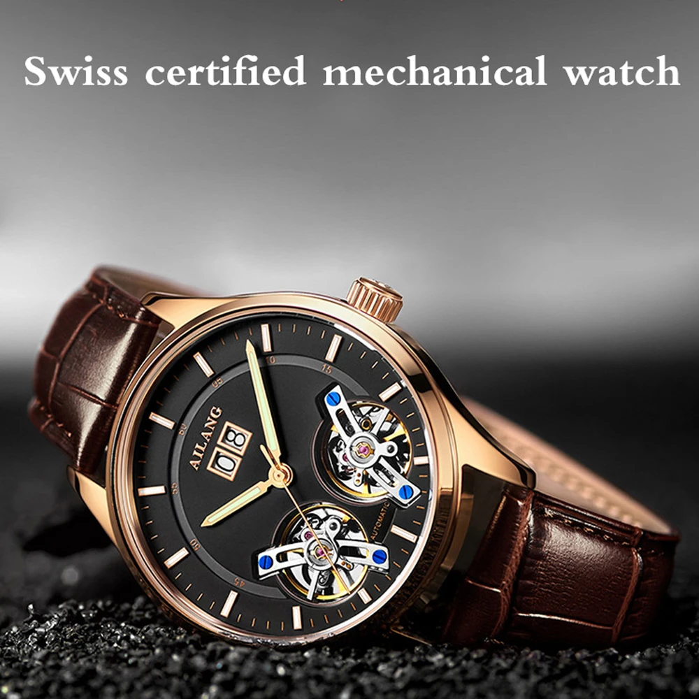 Мужские часы AILANG, сертифицированные в швейцарском стиле, новинка 2019, автоматические механические часы с двойным турбийоном, полые немецкие Маленькие Мужские часы