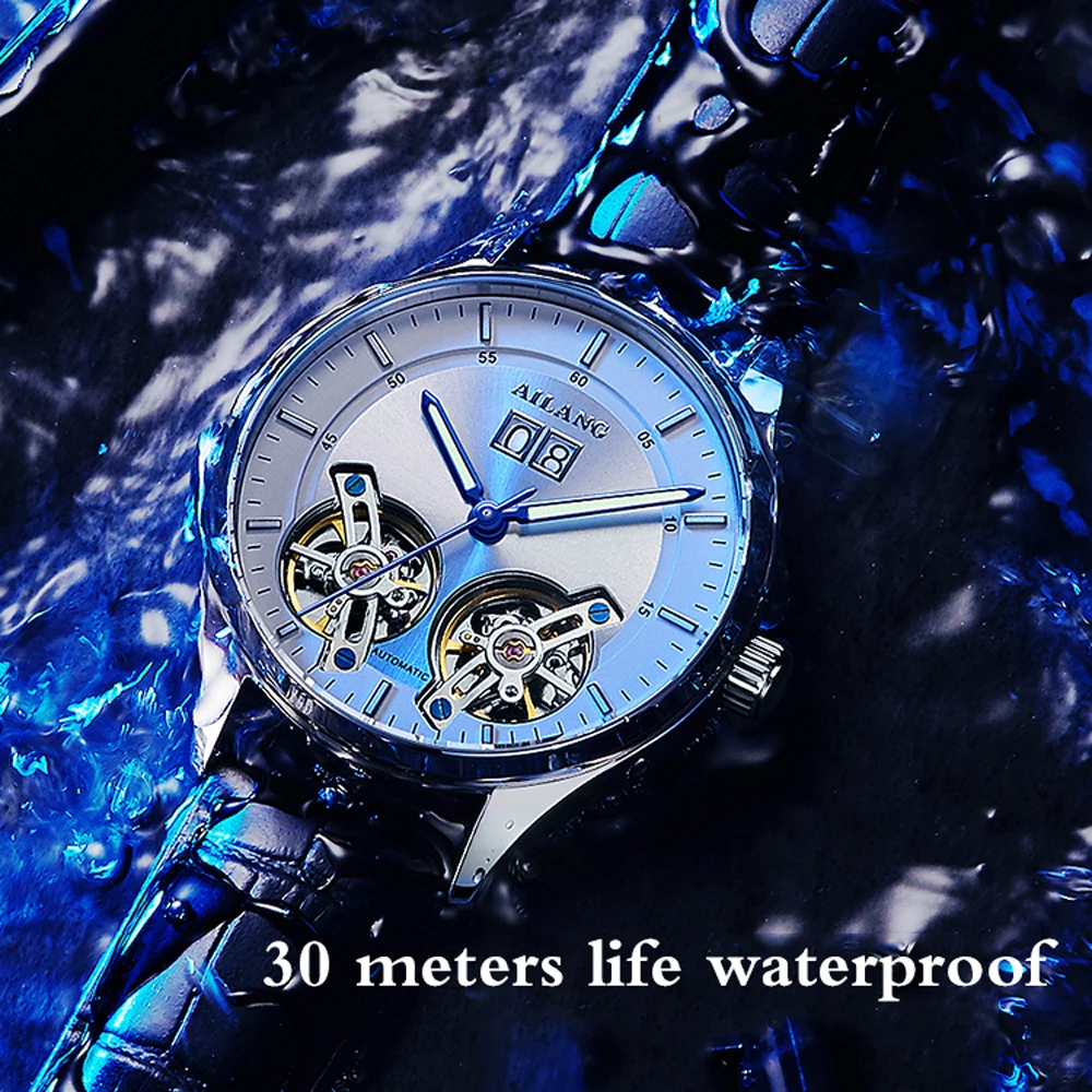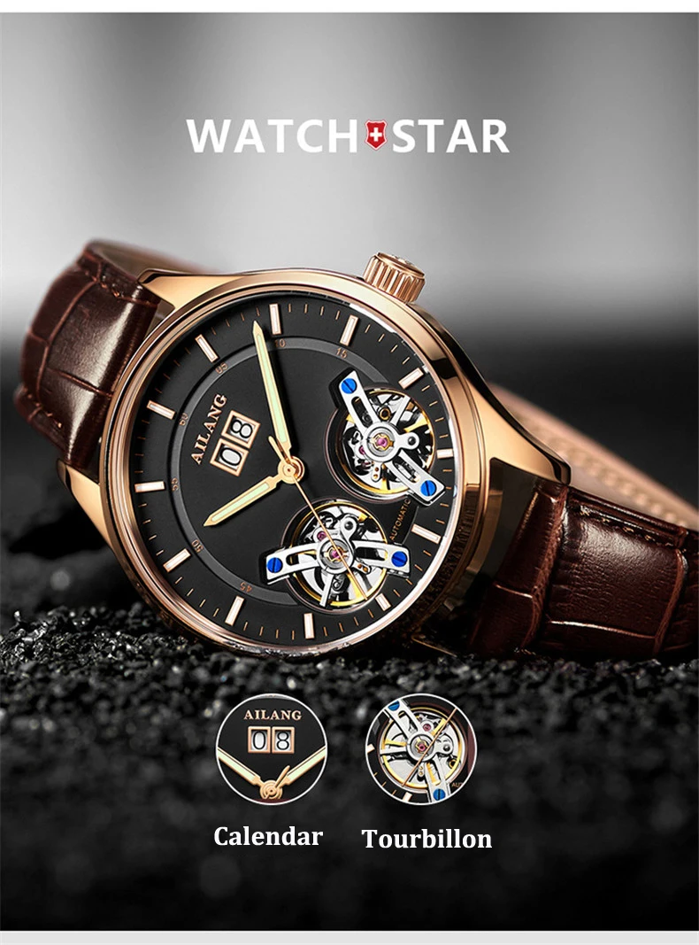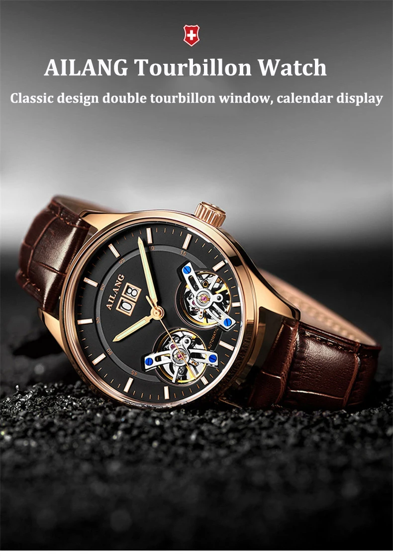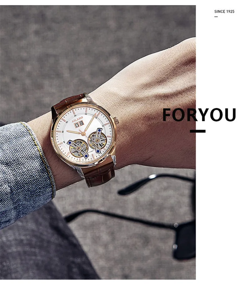 Мужские часы AILANG, сертифицированные в швейцарском стиле, новинка 2019, автоматические механические часы с двойным турбийоном, полые немецкие Маленькие Мужские часы