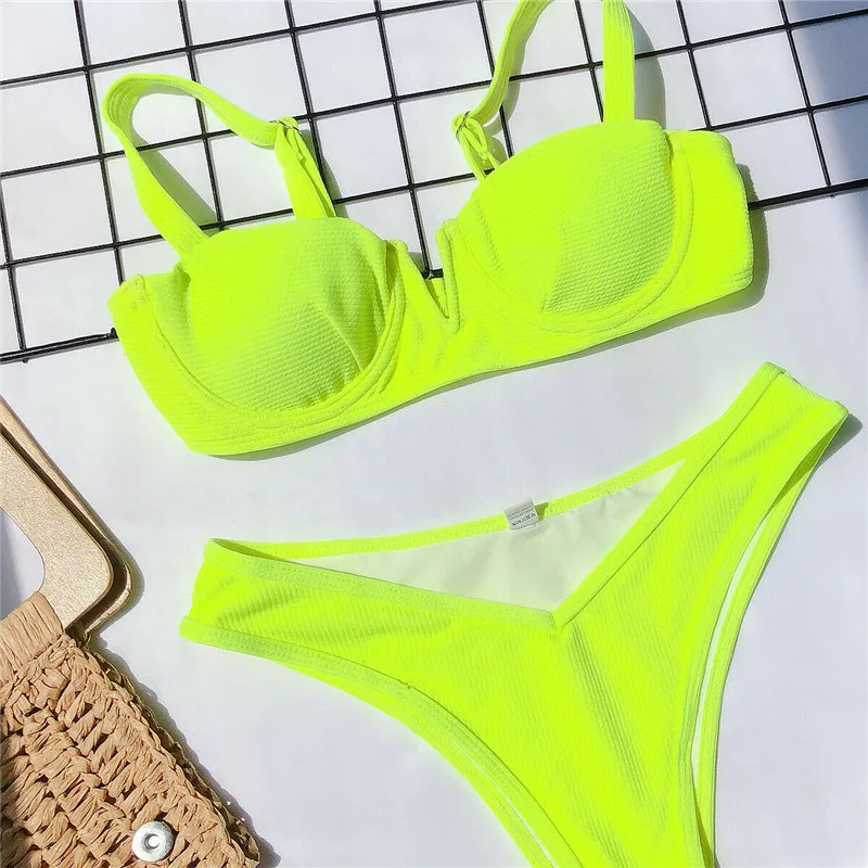 Бикини, 2 шт., женский бюстгальтер с пуш-ап, с подкладкой + стринги, комплект бикини, купальник с треугольным вырезом, для плавания, спортивный maillot de bain, праздничная пляжная одежда