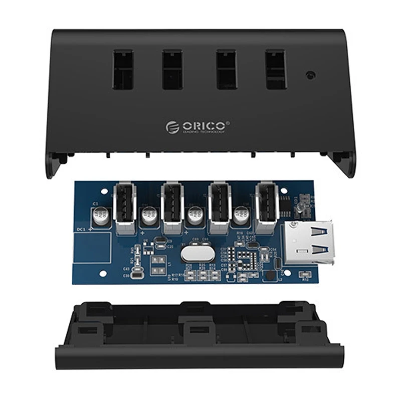 ORICO 5 Гбит/с высокоскоростной мини 4 порта USB 3,0 концентратор для настольного ноутбука с подставкой держатель для телефона планшета ПК (черный)