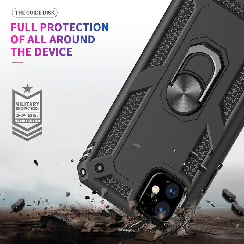 Роскошный Жесткий противоударный чехол для iphone 11 Pro, XS MAX, X, XR, 7, 8, 6 S, 6 S Plus, с магнитным кольцом-держателем для автомобиля, чехол для телефона
