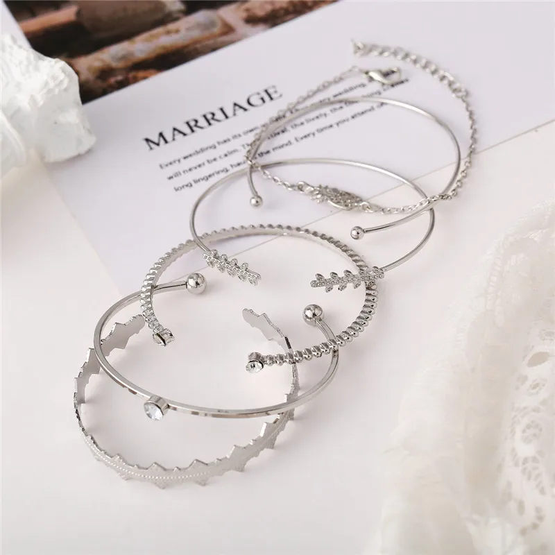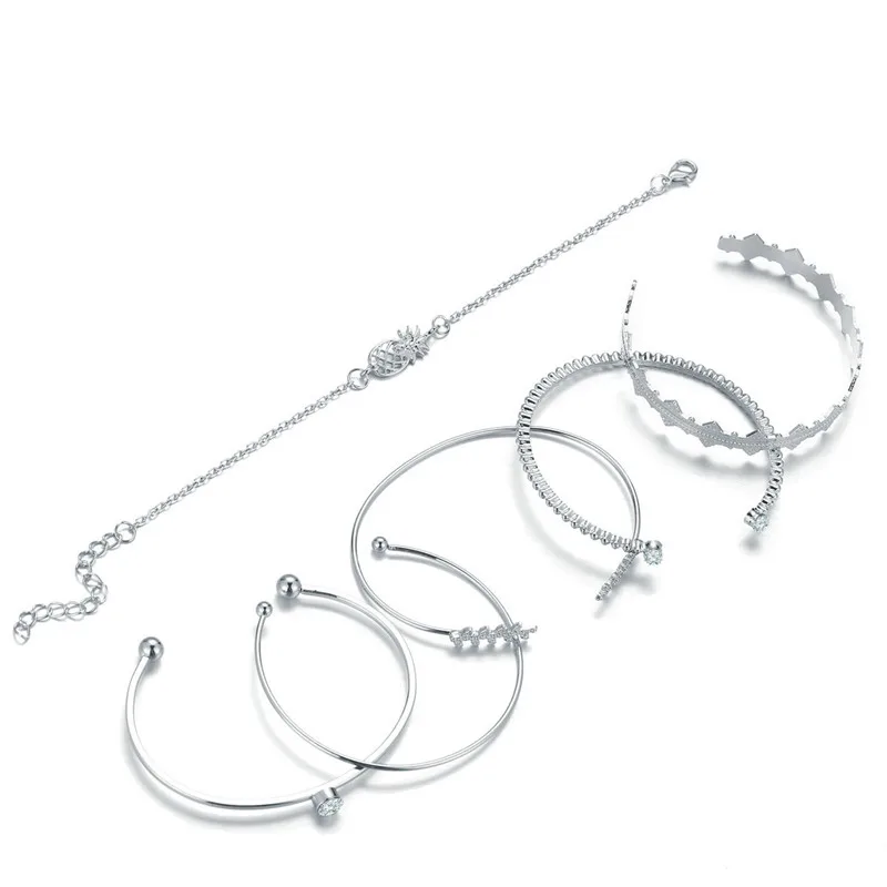 Набор открытых браслетов Woozu для женщин, 6 шт.компл., богемный серебристый цвет, ананас, кристалл, опал, в стиле панк, бохо, пляжный браслет, ювелирные изделия, подарок