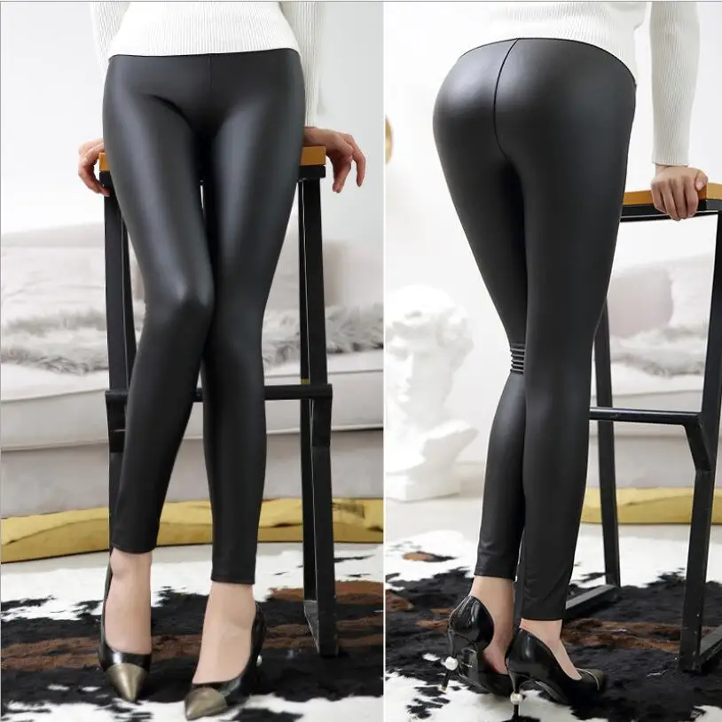 SLHJC S-5XL Леггинсы для женщин пикантные Империя Блестящие ботильоны из матовой кожи на вечерние Брюки с широкой талией облегающие тянущиеся колготки леди брюки пуш-ап бедра