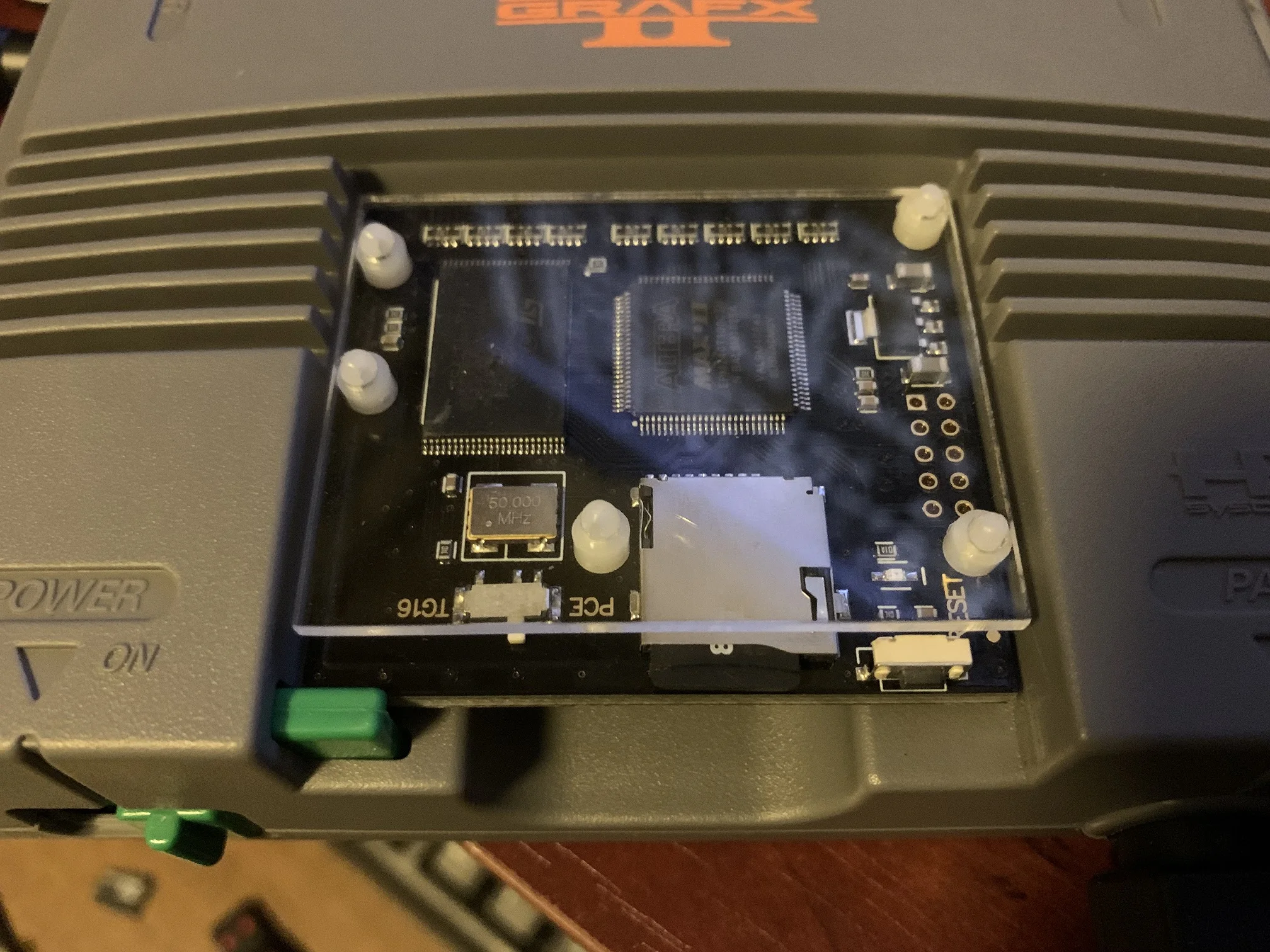 Карта теперь версия 1,9, которая отличается от версии 1,8 в размещении слота для карт microsd и переключателя региона TG16/PCE. Слот для карты microsd перемещается на правую сторону, поэтому он больше не мешает выключателю питания консоли. Ромы на microsd карте не очень хорошо организованы, поэтому я удалил их и загрузил свой собственный пакет rom.