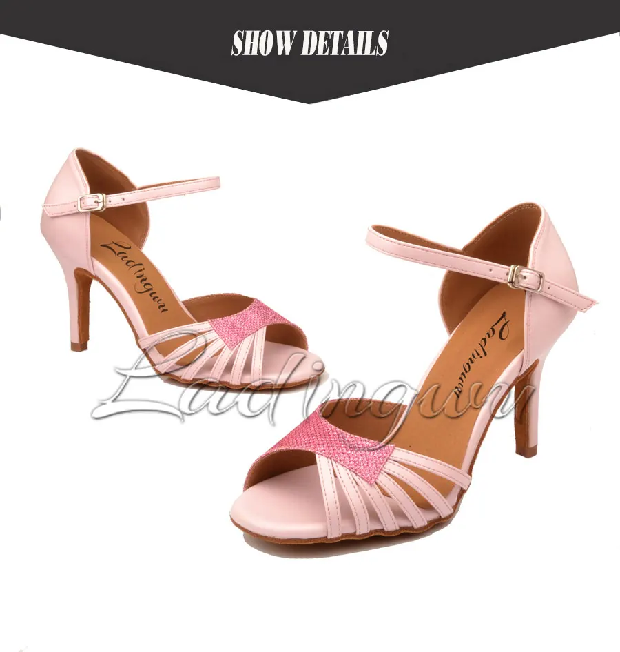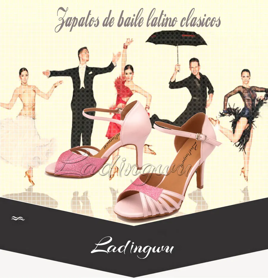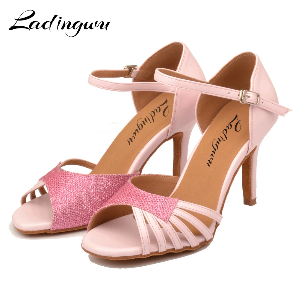Женские туфли для латиноамериканских танцев Ladingwu, розовые блестящие туфли из искусственной кожи для сальсы, женские сандалии для бальных танцев