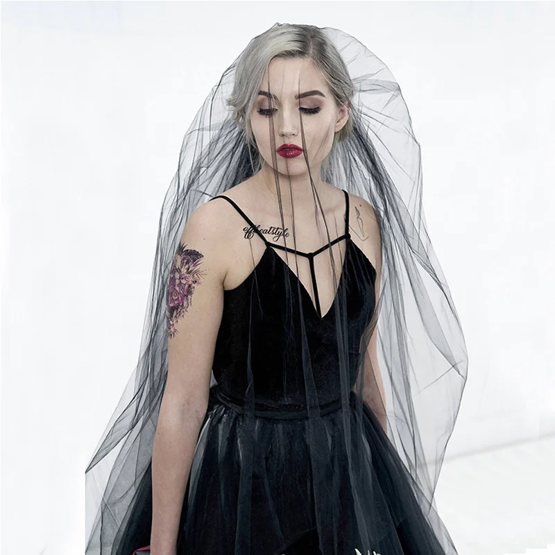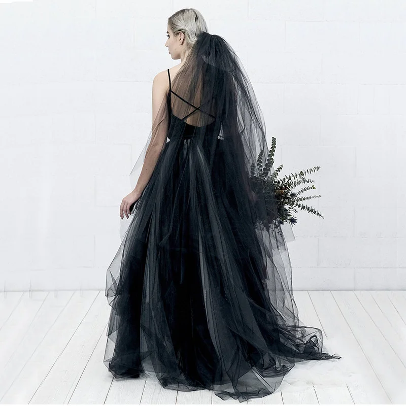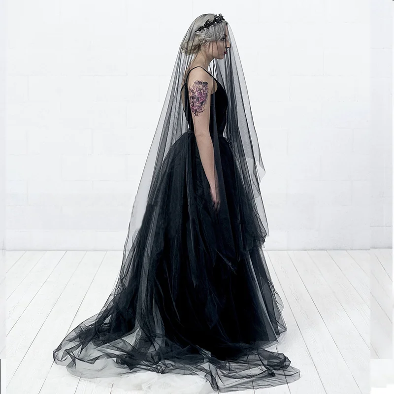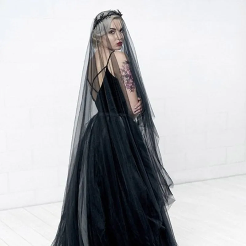 Фата свадебная Длинная черная, Тюлевая Фата для невесты, однослойна...